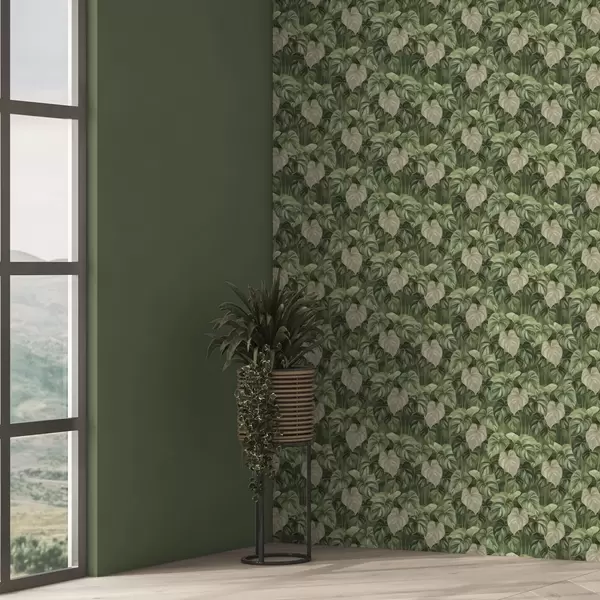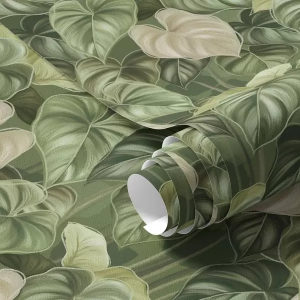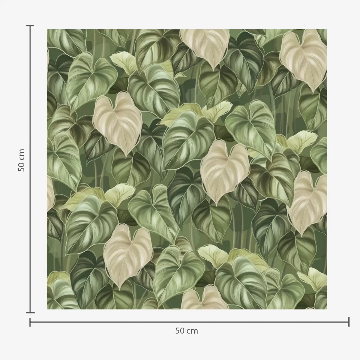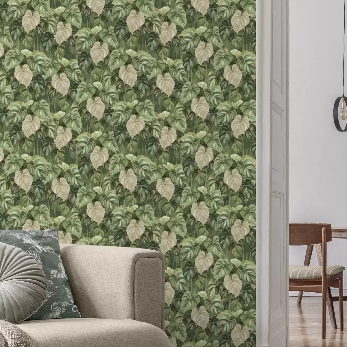 Papel de parede Folhas exuberantes de filodendro em tons de verde e marfim Nr. a00695