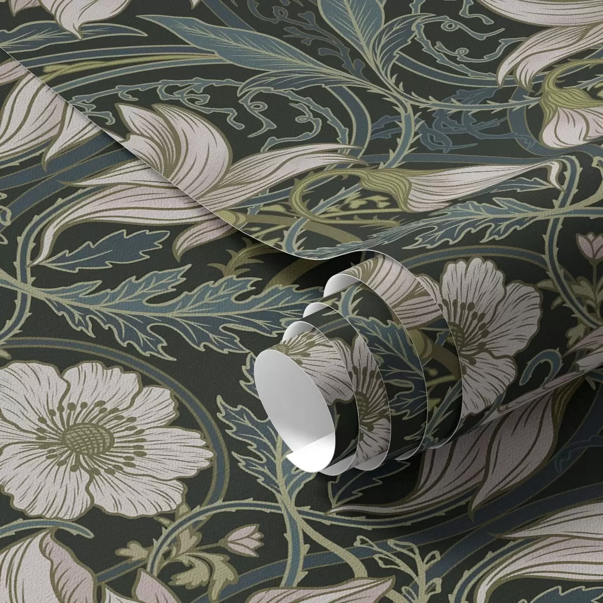 Papel de parede Composição Art Nouveau com lírios sobre fundo escuro Nr. a00696