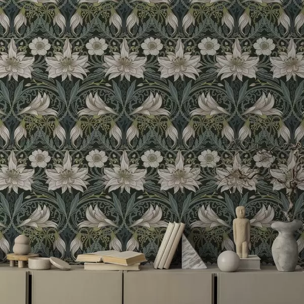 Papel de parede Composição Art Nouveau com lírios sobre fundo escuro Nr. a00696