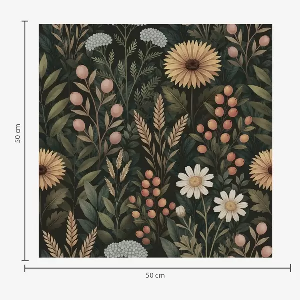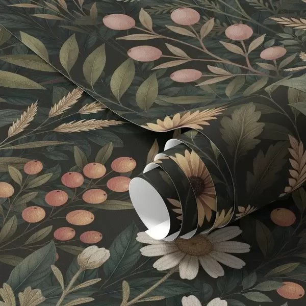 Papel de parede Flores silvestres e bagas sobre fundo escuro, ornamento natural Nr. a00707