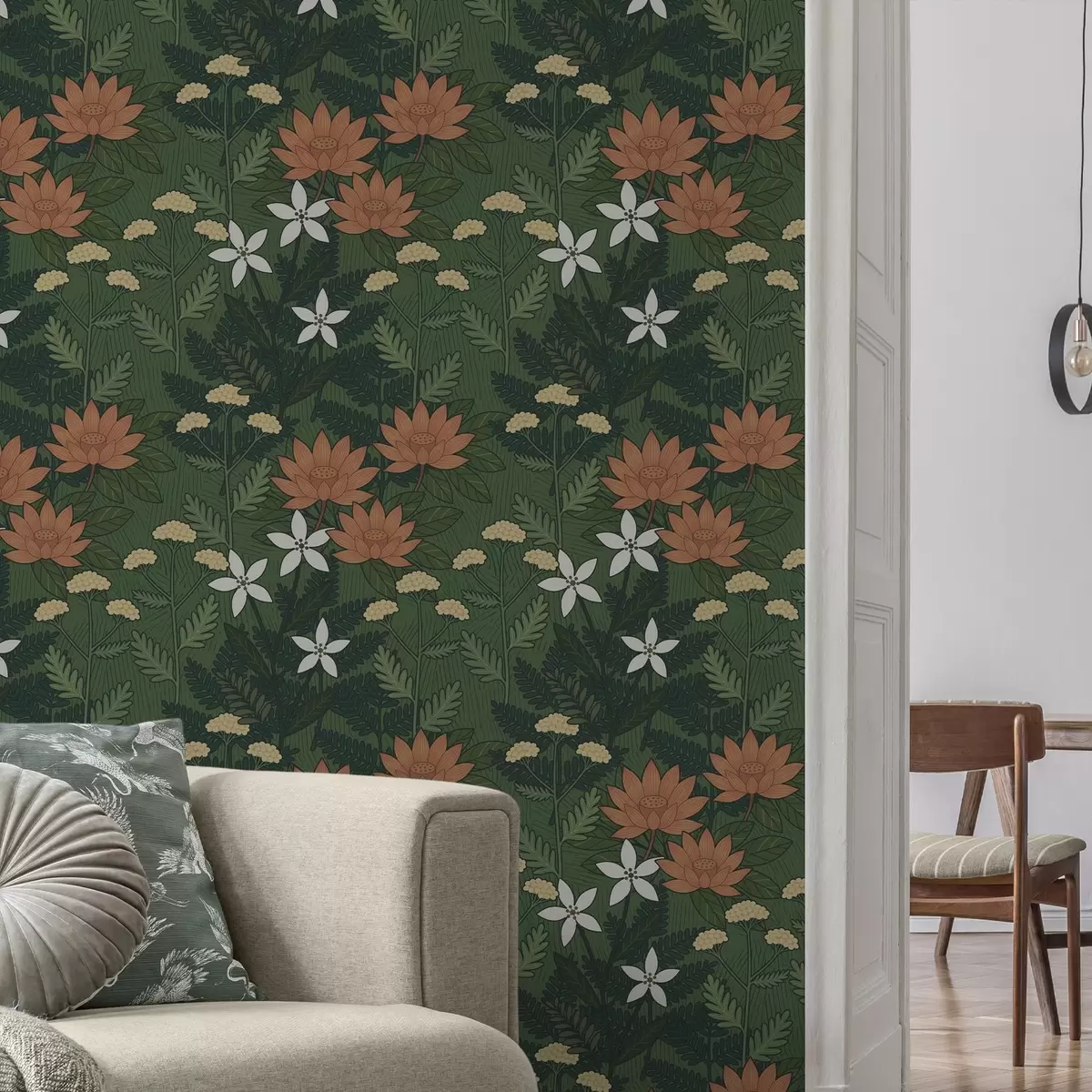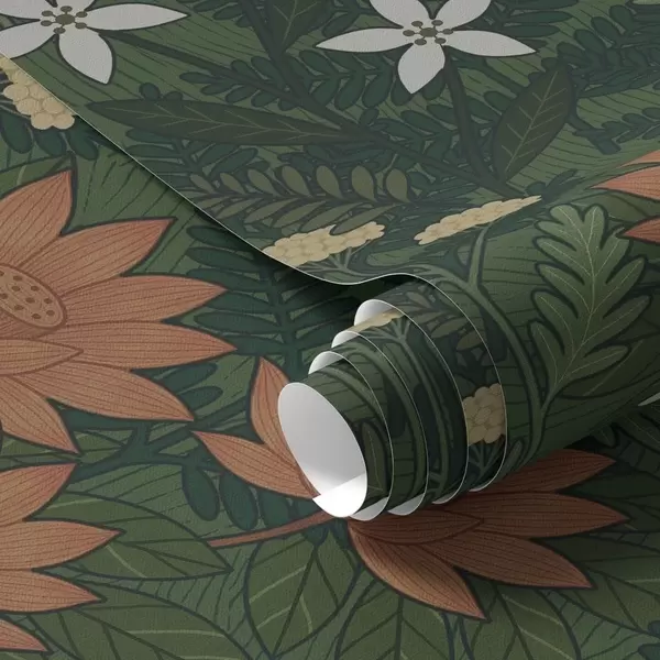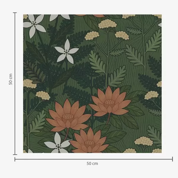 Papel de parede Grandes flores entre folhagem verde, composição decorativa Nr. a00708