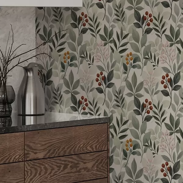 Papel de parede Folhas com bagas, fundo claro Nr. a00713