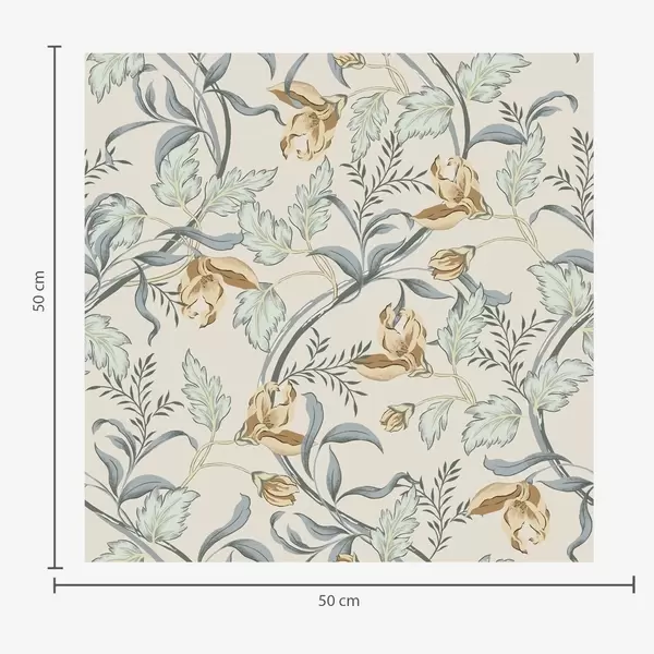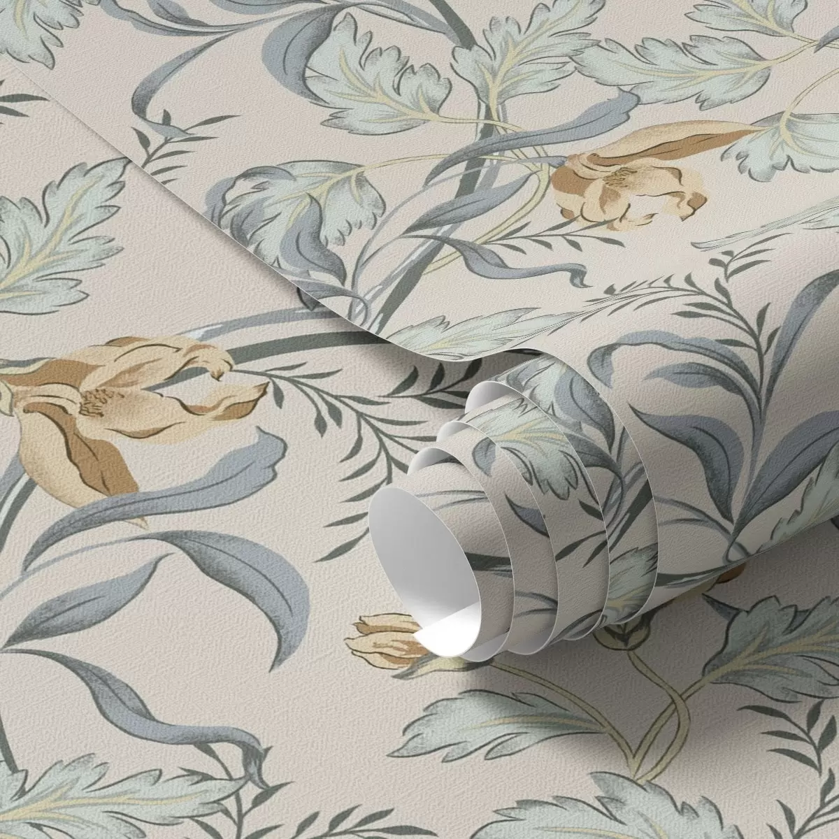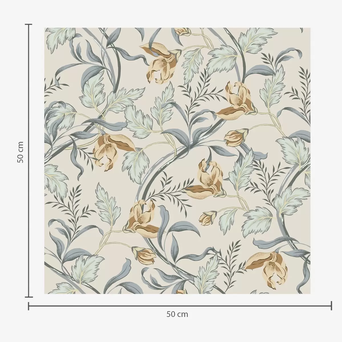 Papel de parede Flores vintage com folhagem azul sobre fundo creme Nr. a00717