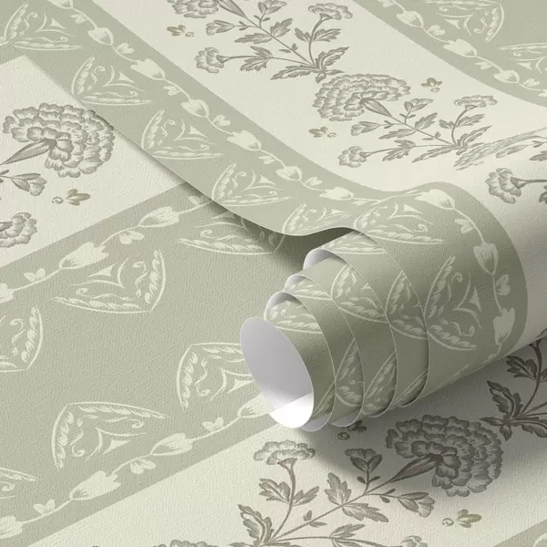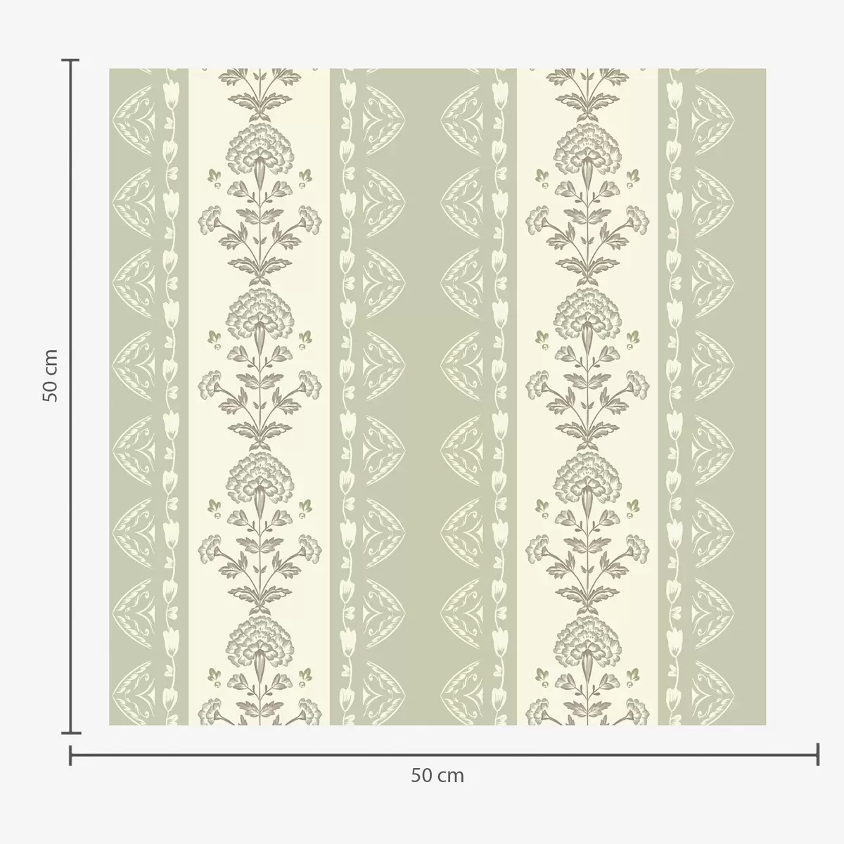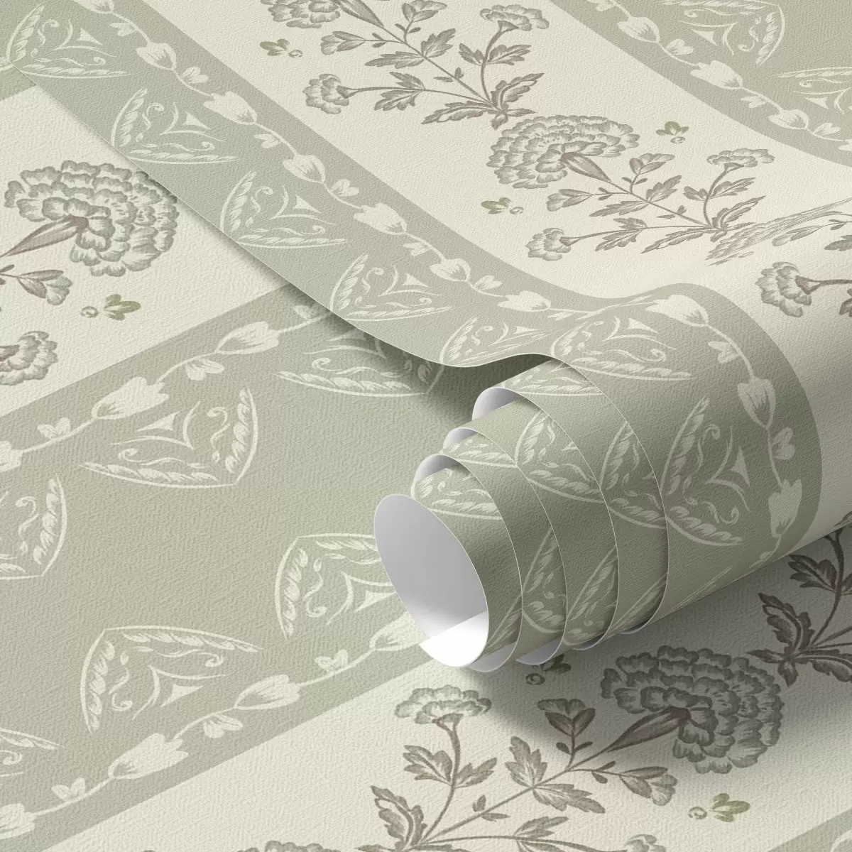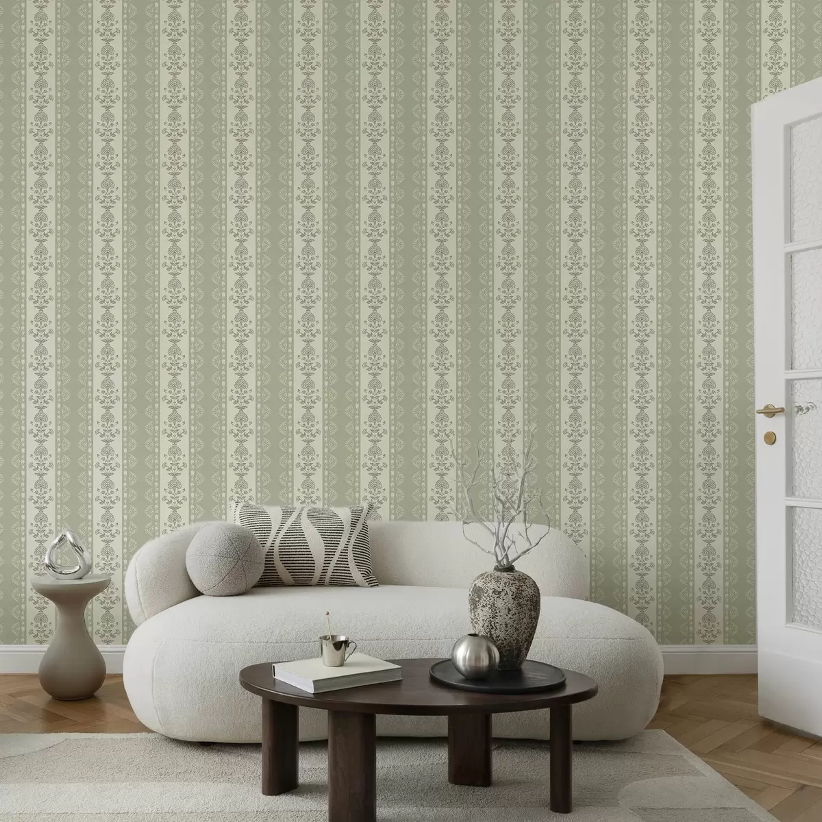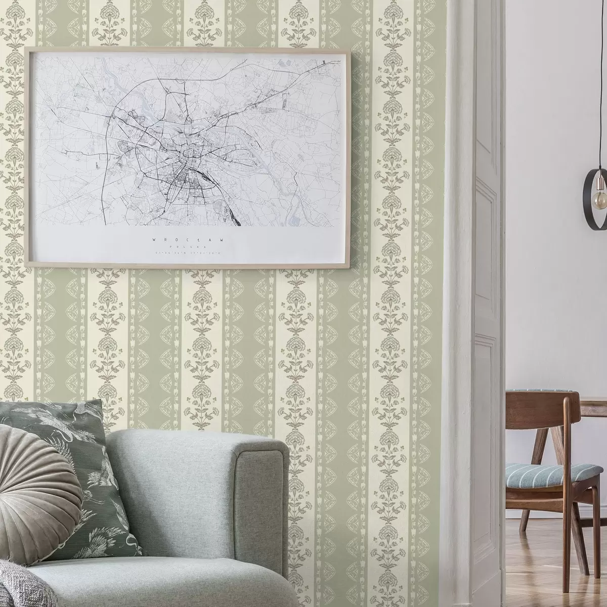 Papel de parede Ornamento listrado com colunas florais em tons de salva a00719
