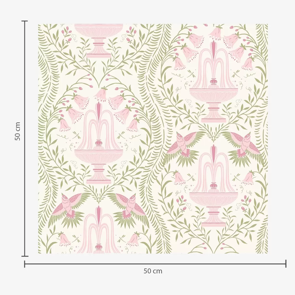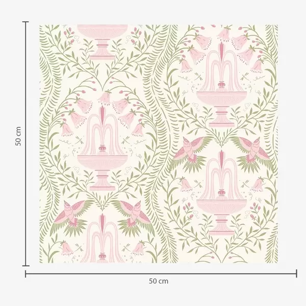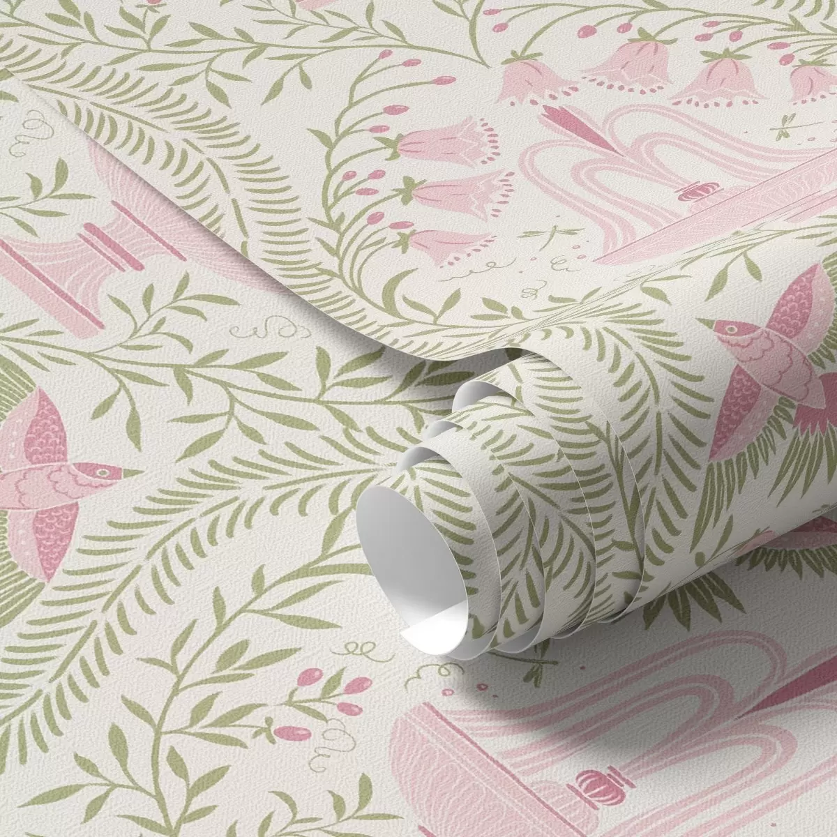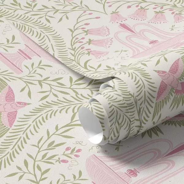 Papel de parede Fontes, beija-flores e arabescos verdes sobre um fundo claro Nr. a00723