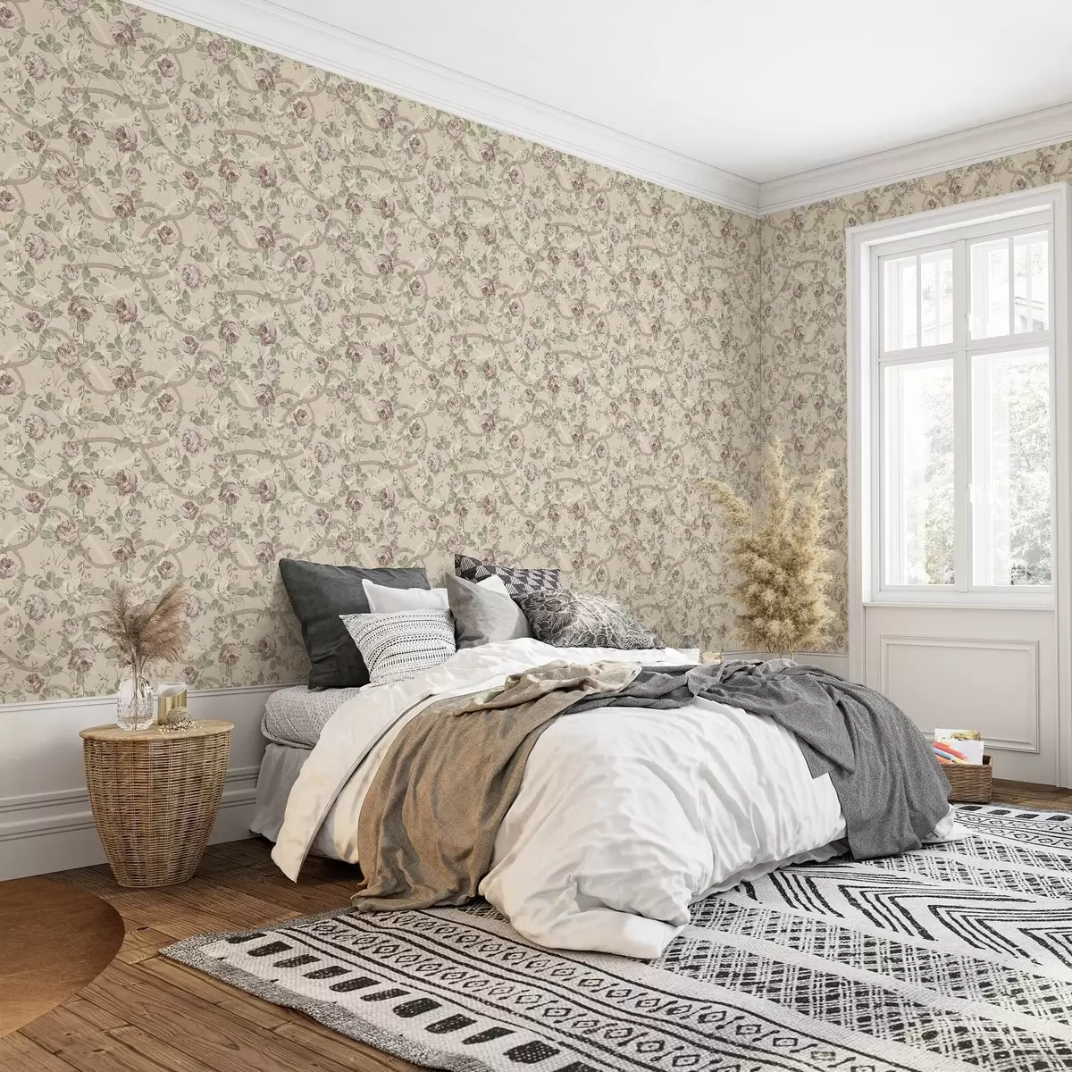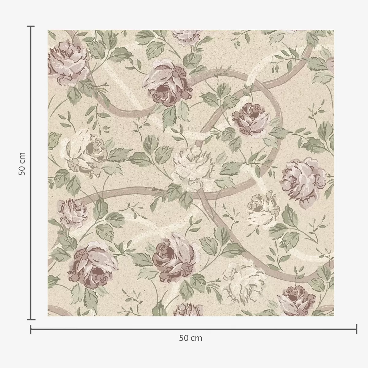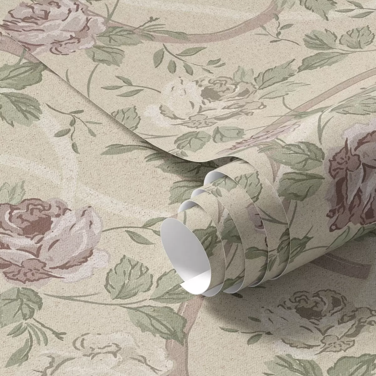 Papel de parede Rosas com folhas verdes sobre uma base bege quente Nr. a00729