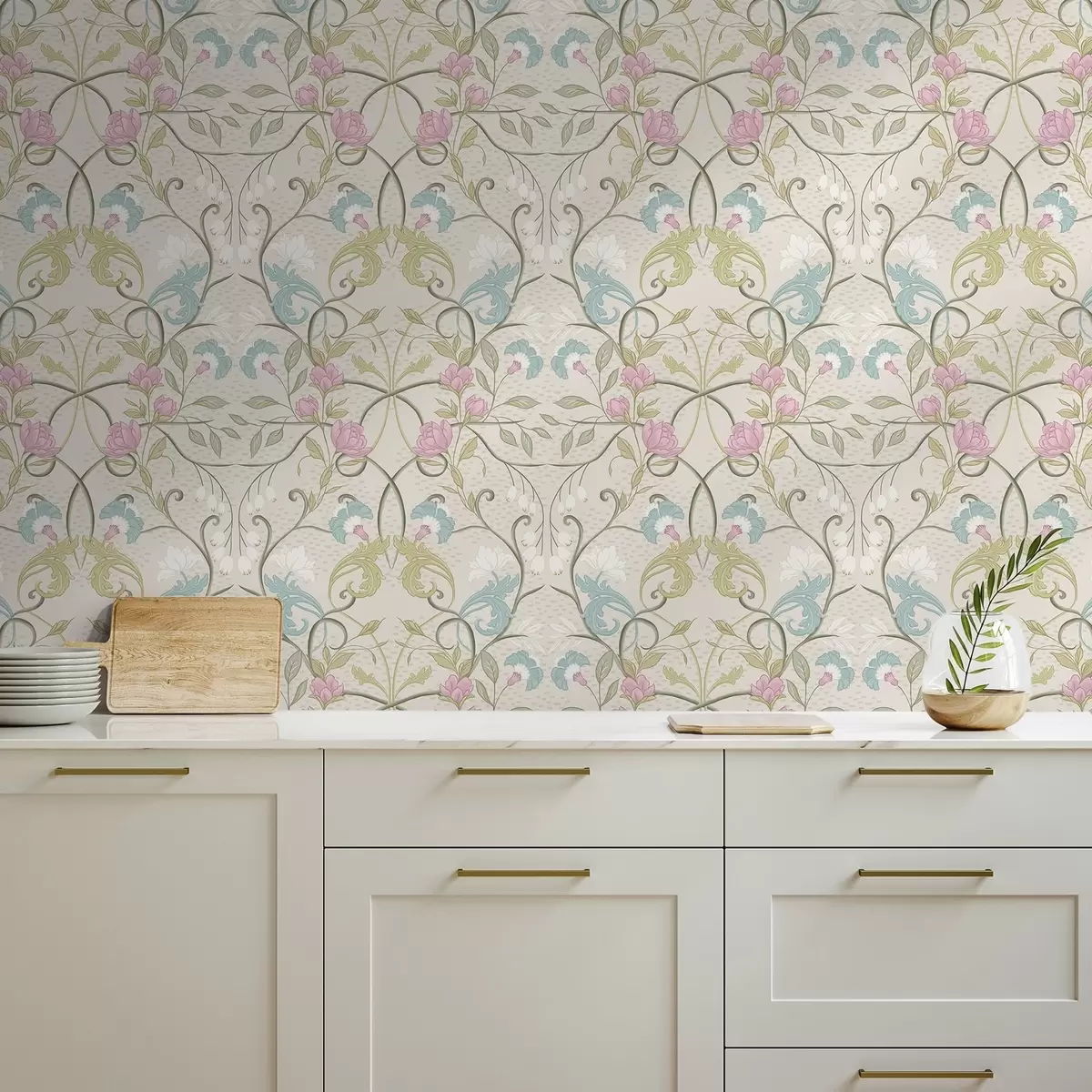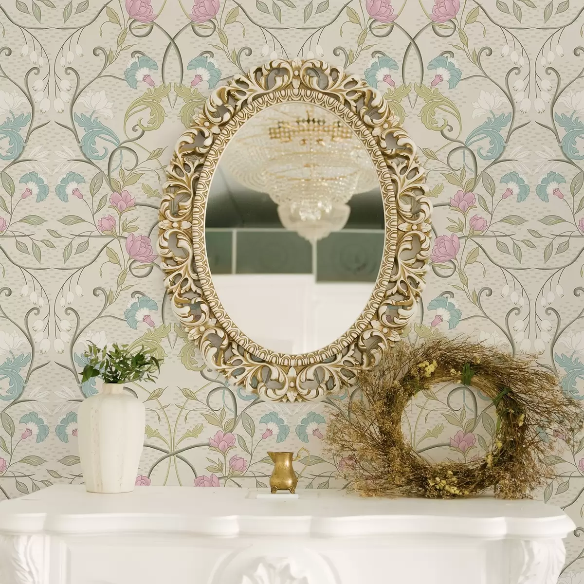 Papel de parede Elegante padrão floral com flores rosa e azuis Nr. a00730