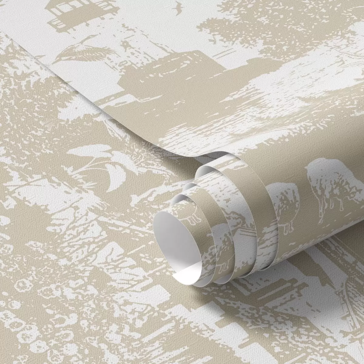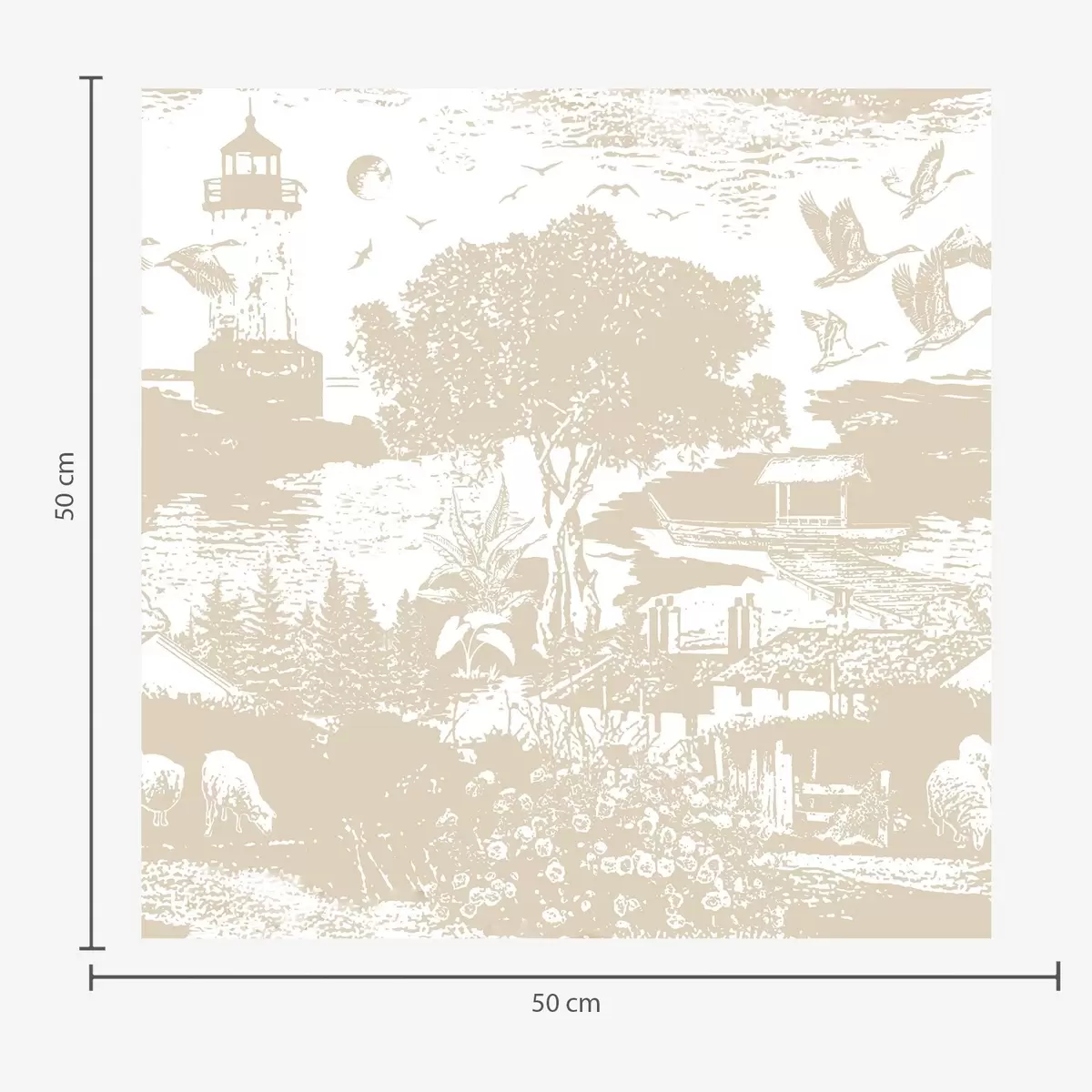 Papel de parede Cena com farol, árvores e casas em sienna Nr. a00739