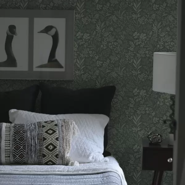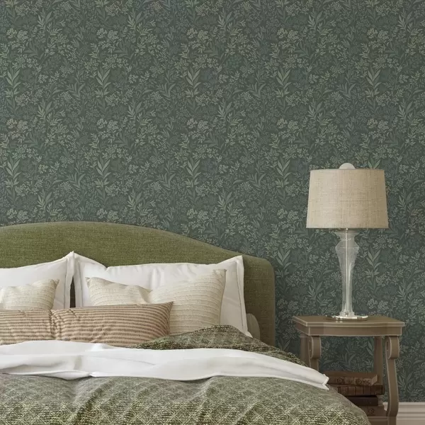 Papel de parede Ervas e bagas esmeraldas, padrão botânico delicado Nr. a00740