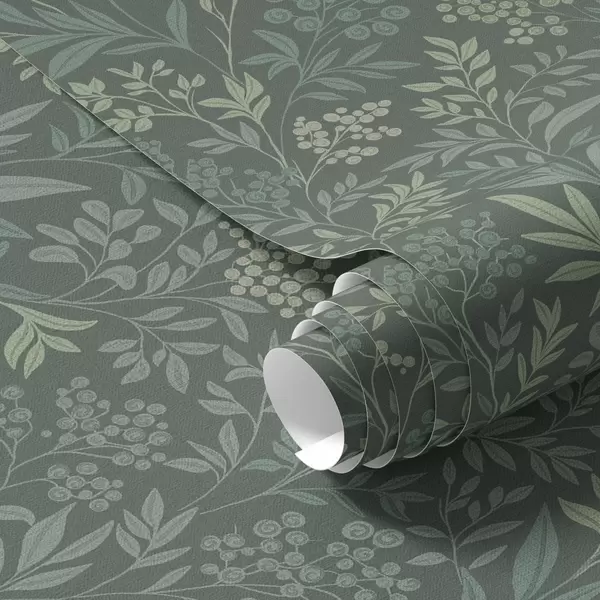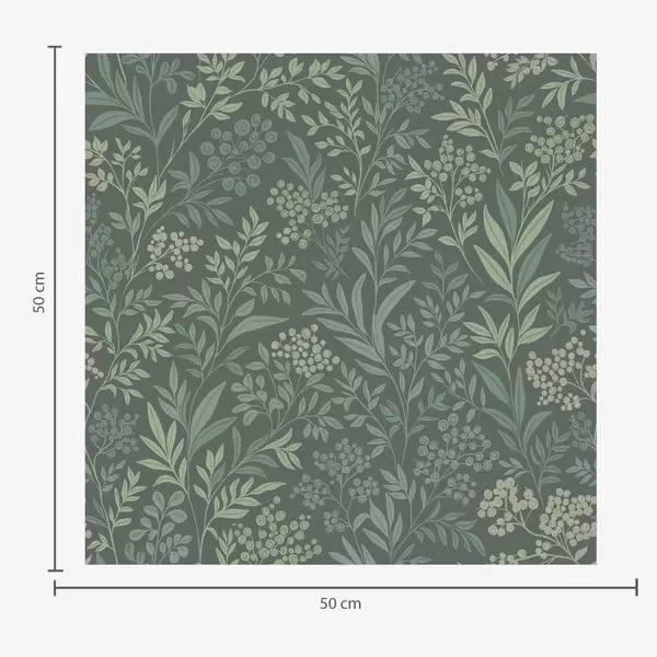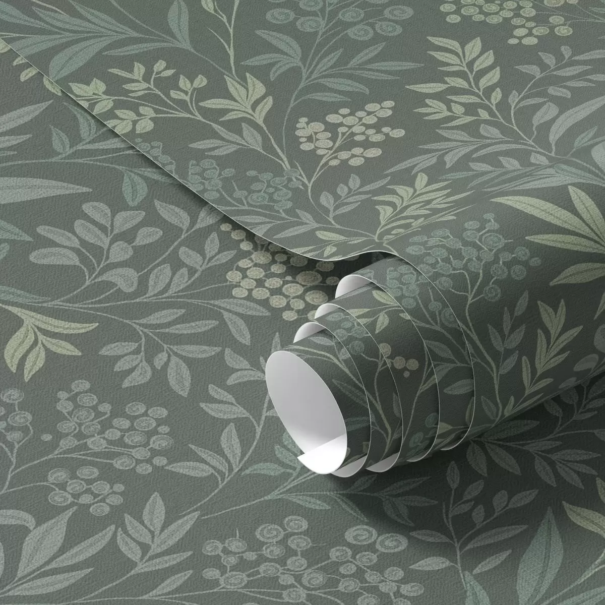 Papel de parede Ervas e bagas esmeraldas, padrão botânico delicado Nr. a00740