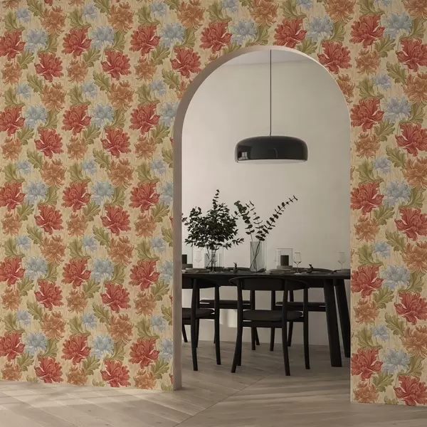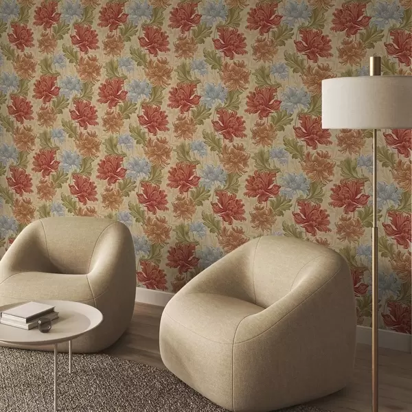 Papel de parede Grandes crisântemos em tons quentes sobre um fundo bege Nr. a00743