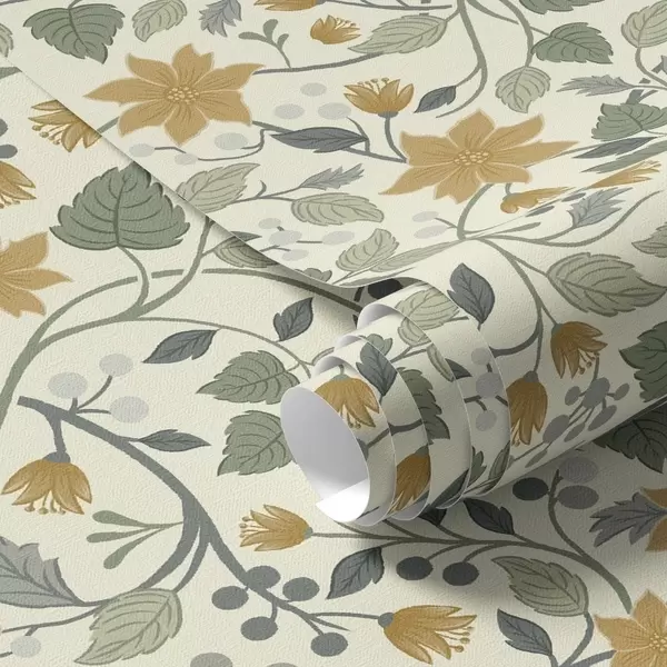 Papel de parede Galhos trepadeiras com flores amarelas e bagas Nr. a00750