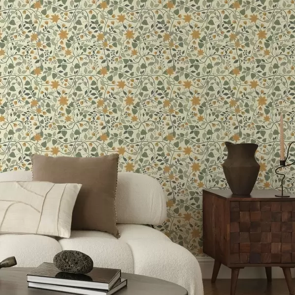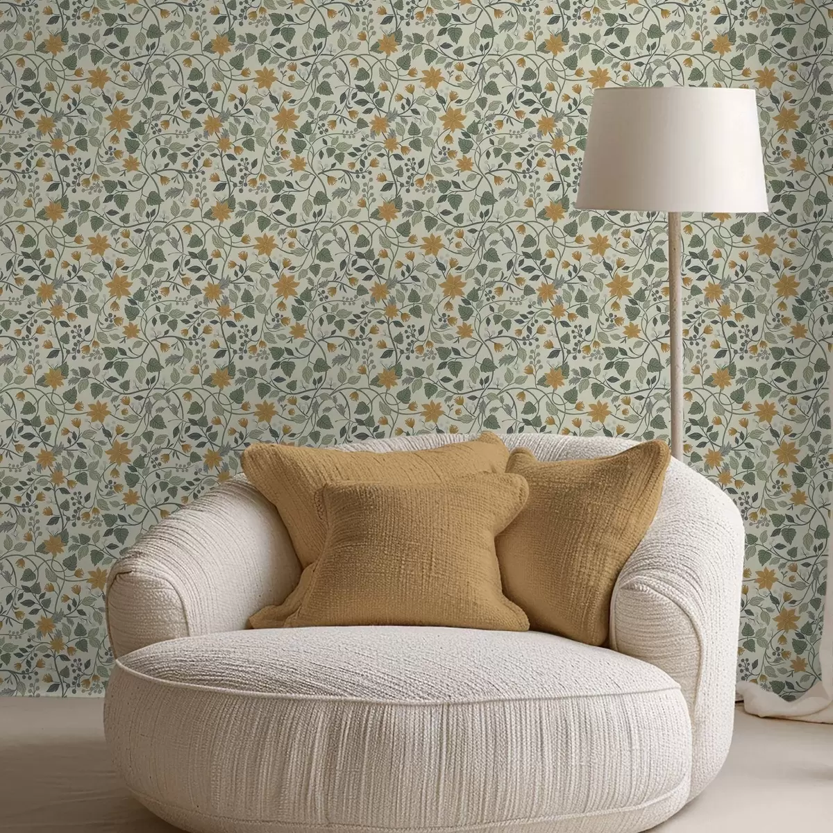 Papel de parede Galhos trepadeiras com flores amarelas e bagas Nr. a00750