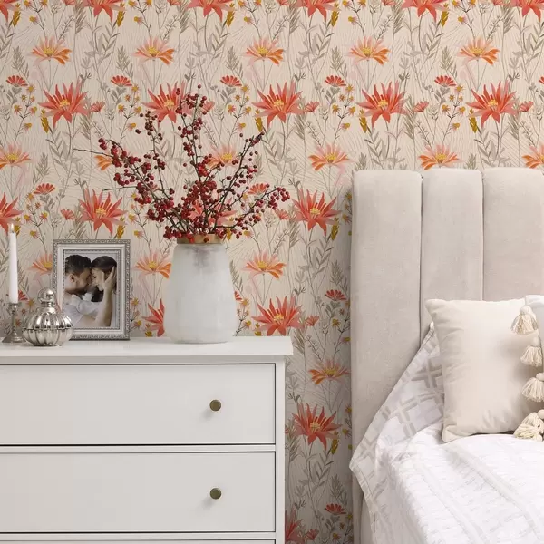 Papel de parede Flores silvestres em tons quentes sobre fundo bege Nr. a00751