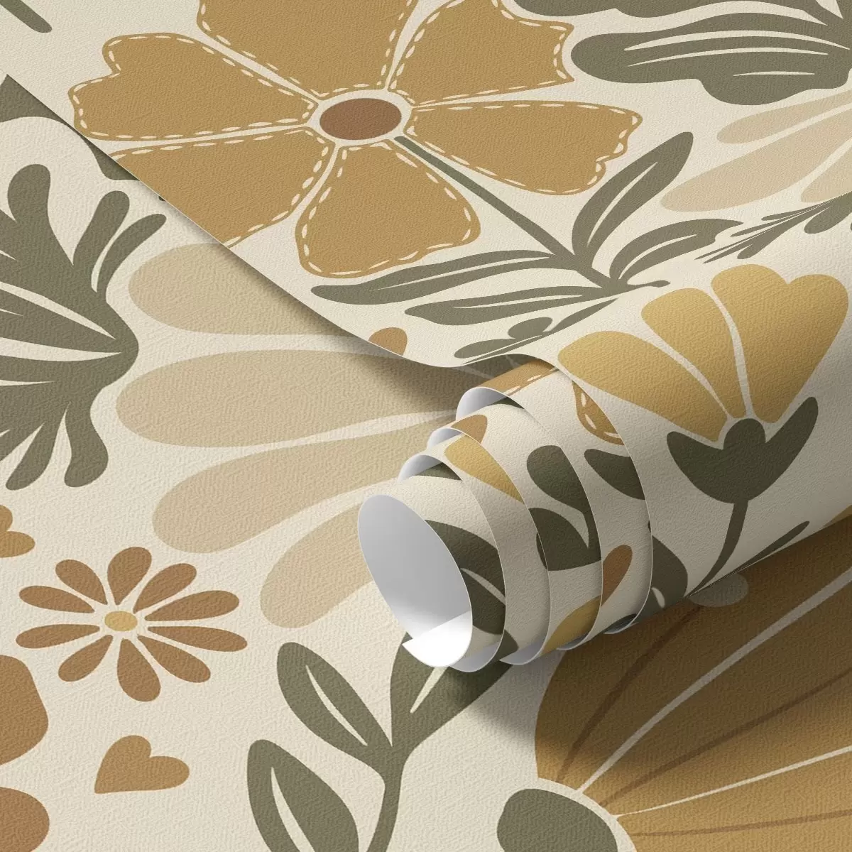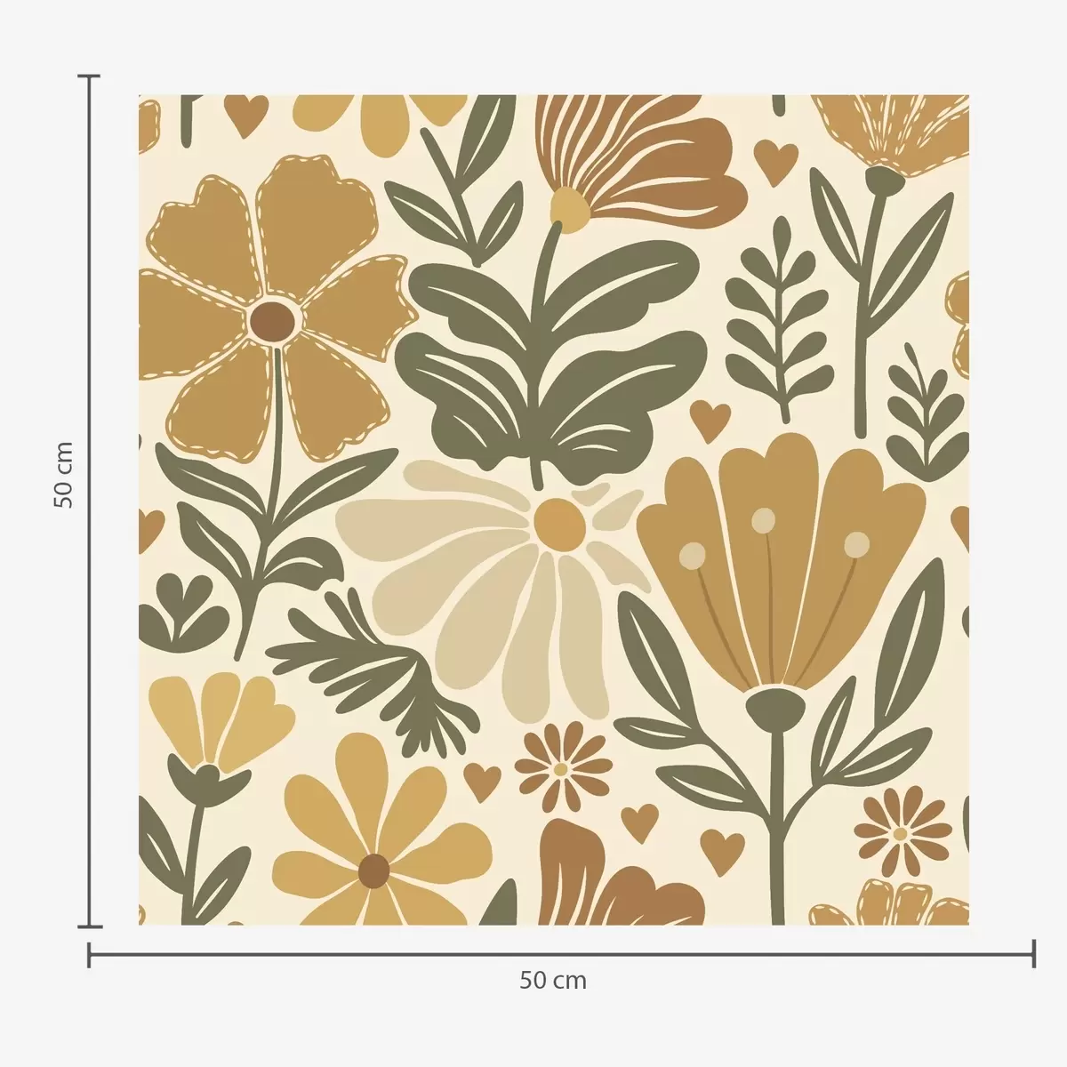 Papel de parede Flores estilizadas em tons quentes com corações Nr. a00752