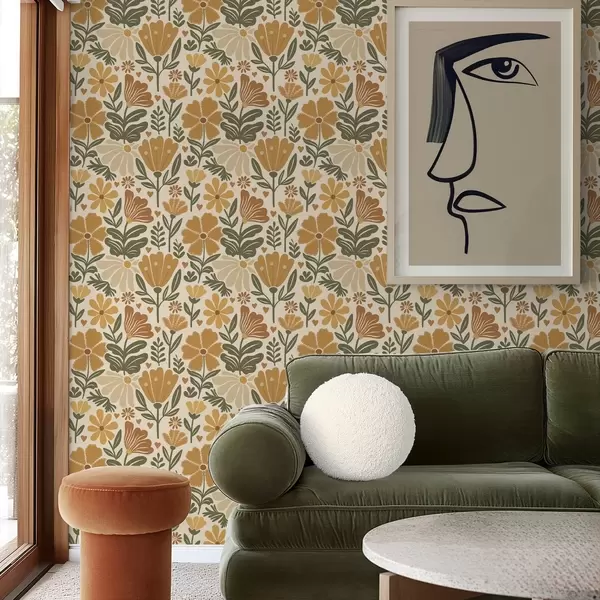 Papel de parede Flores estilizadas em tons quentes com corações Nr. a00752