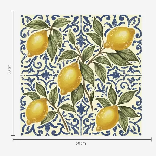 Papel de parede Galhos de limão com fundo ornamental azul Nr. a00763