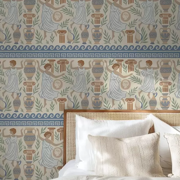 Papel de parede Ornamento grego antigo com figuras, vasos e colunas Nr. a00768