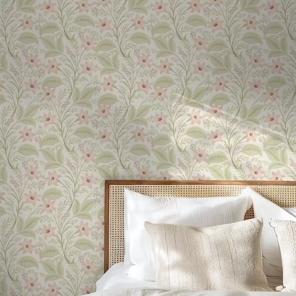 Papel de parede Flores delicadas e folhas em tons pastéis Nr. a00771