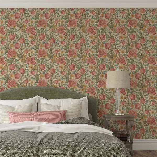 Papel de parede Tulipas e ásteres vintage, fundo creme texturizado Nr. a00773