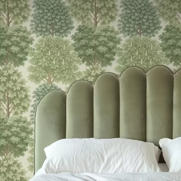 Papel de parede Jardim arborizado em tons suaves de verde sobre um fundo claro Nr. a00775