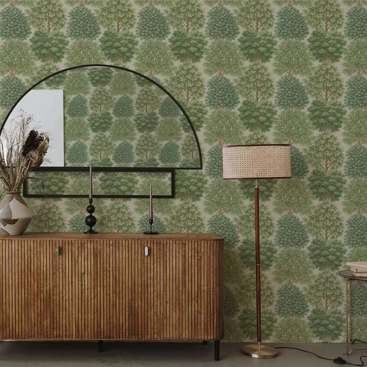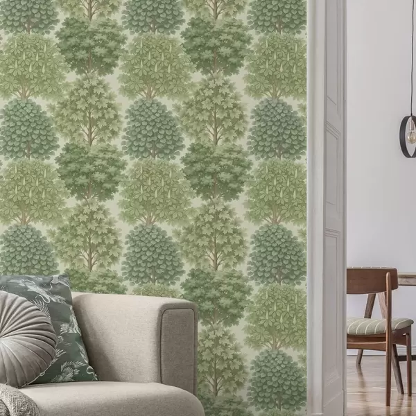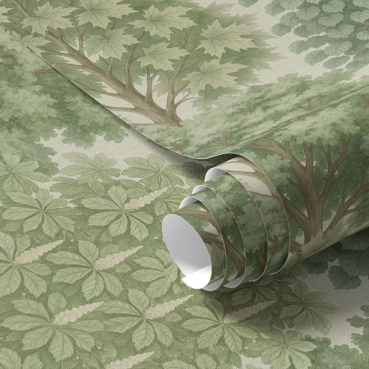 Papel de parede Jardim arborizado em tons suaves de verde sobre um fundo claro Nr. a00775
