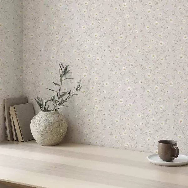 Papel de parede Pequenas margaridas em galhos, bege quente Nr. a00777