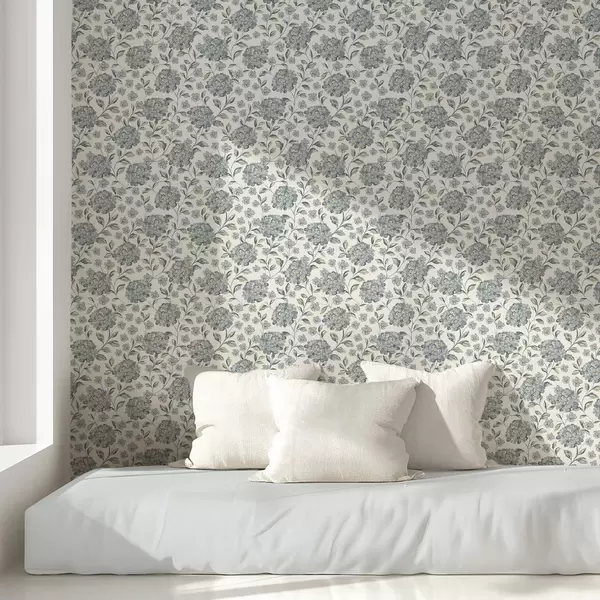 Papel de parede Flores e folhas espessas em uma paleta cinza-azulada a00778