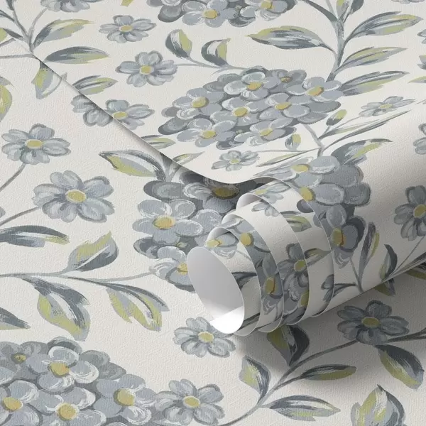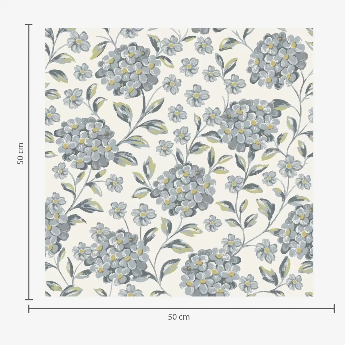 Papel de parede Flores e folhas espessas em uma paleta cinza-azulada Nr. a00778