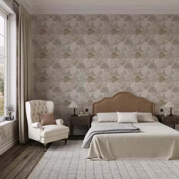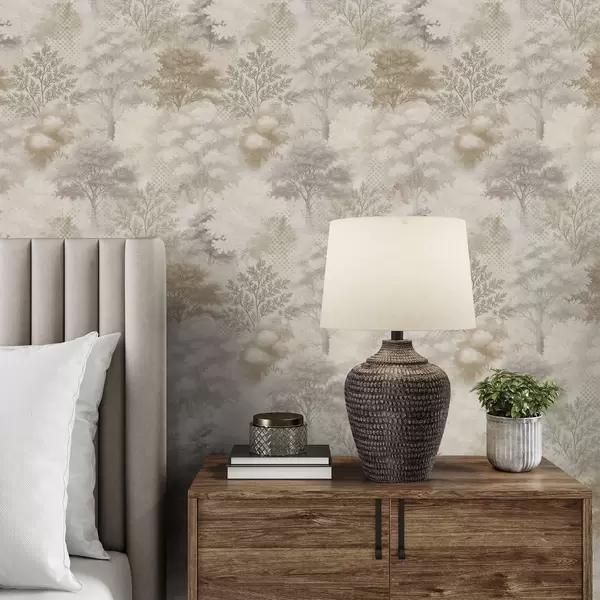 Papel de parede Floresta suave na névoa, tons suaves de bege-cinza Nr. a00785