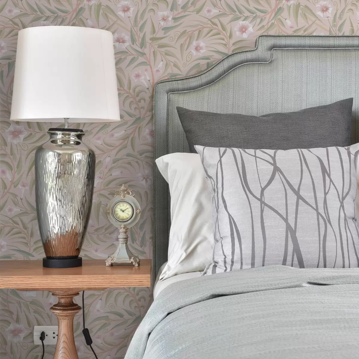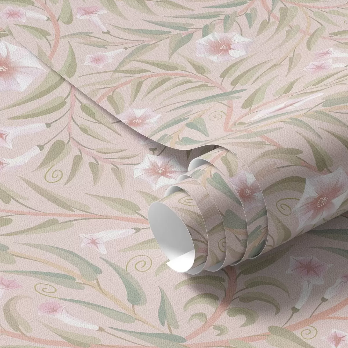 Papel de parede Delicadas flores cor-de-rosa e folhas suaves sobre um fundo pastel Nr. a00788