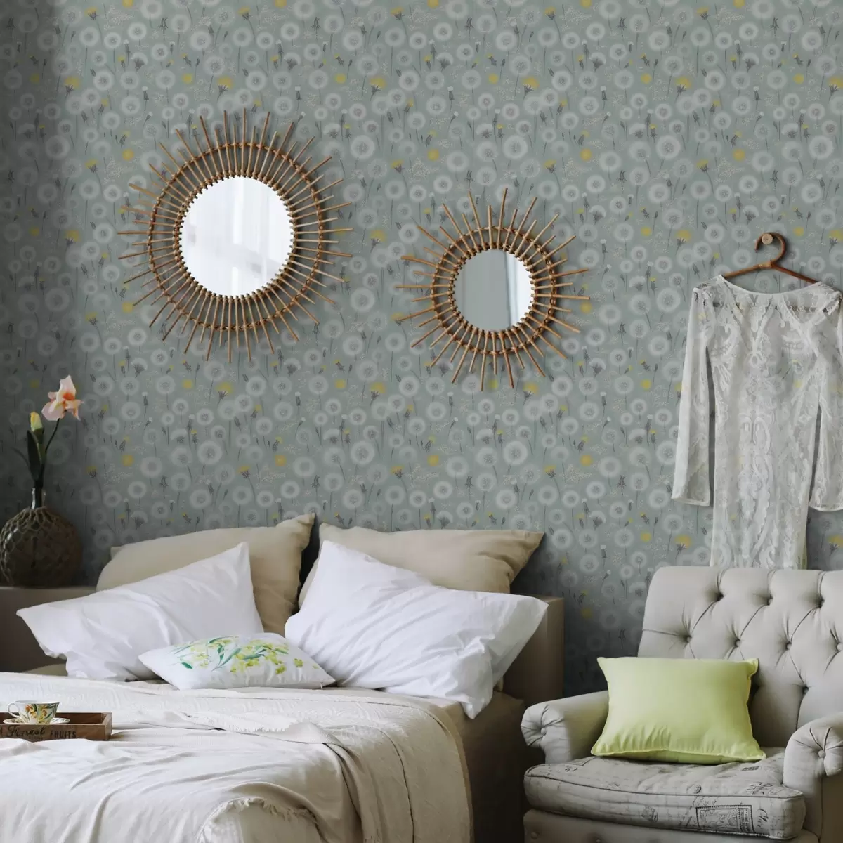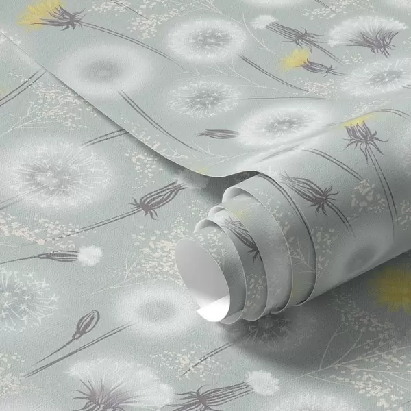 Papel de parede Dentes-de-leão fofos e sementes sobre um fundo verde-menta Nr. a00790