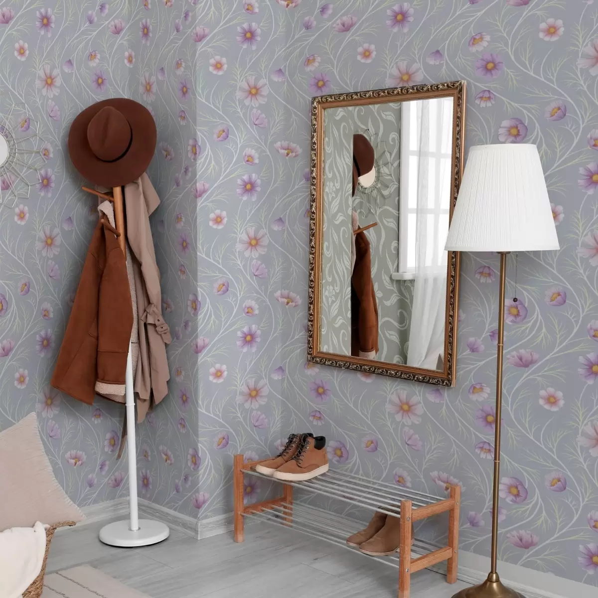 Papel de parede Cosmos rosa e hastes delgadas sobre fundo cinza Nr. a00791