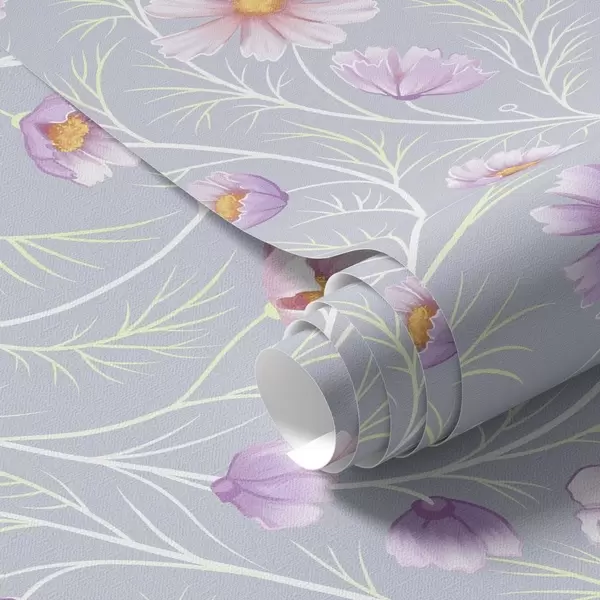 Papel de parede Cosmos rosa e hastes delgadas sobre fundo cinza Nr. a00791