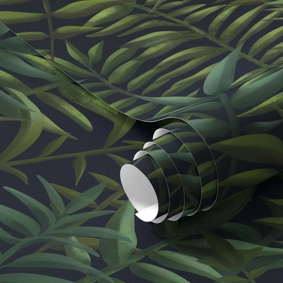 Papel de parede Folhas tropicais escuras sobre um fundo escuro a00794