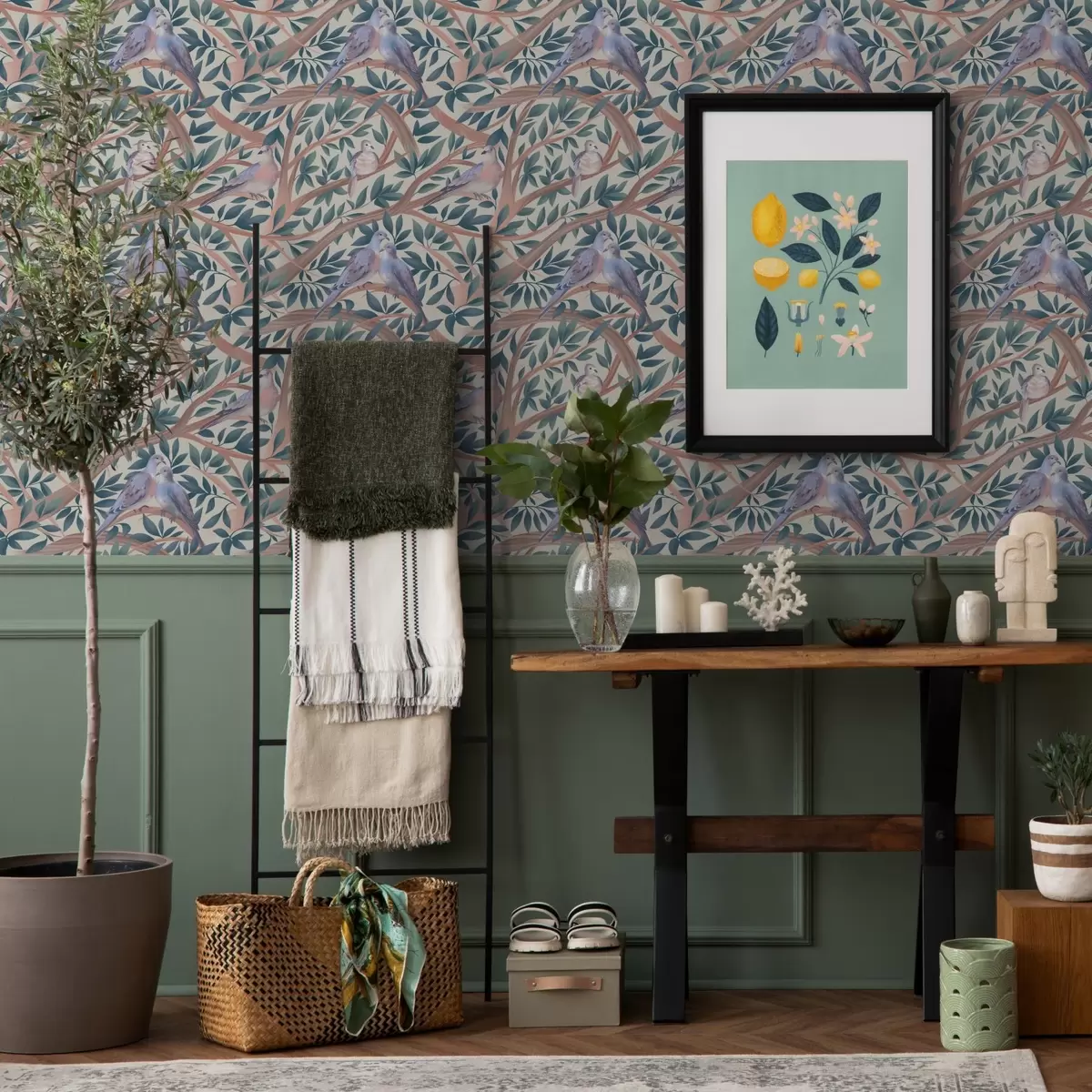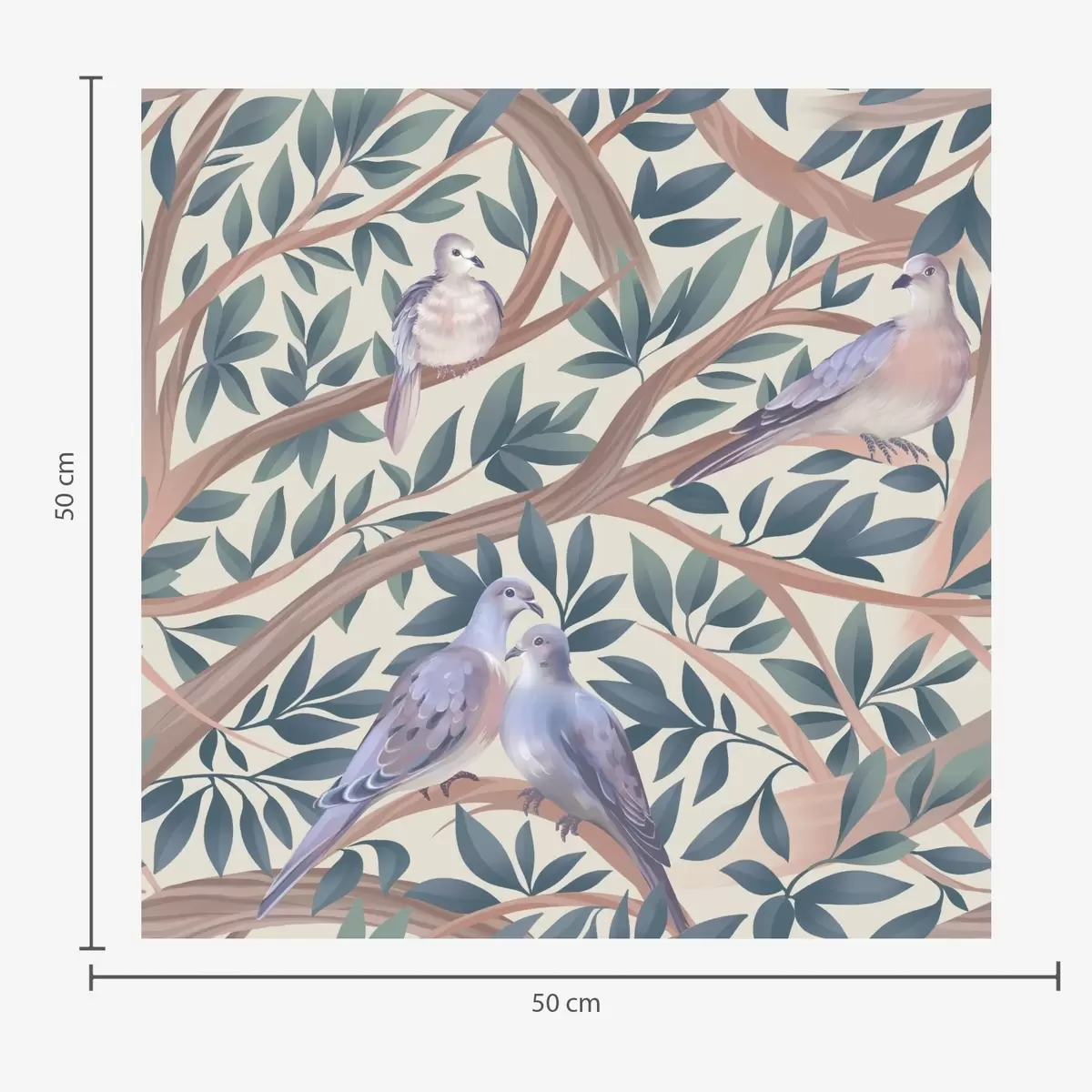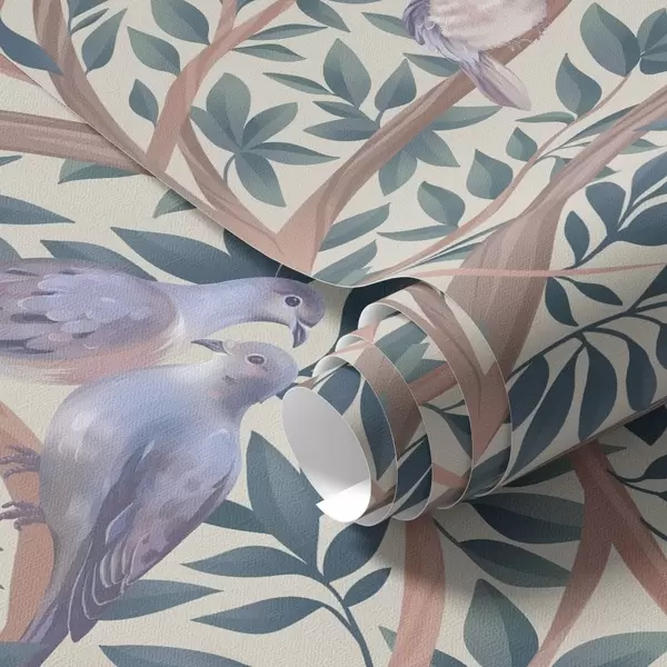 Papel de parede Pombas entre galhos e folhas em uma paleta de tons pastéis suaves Nr. a00796