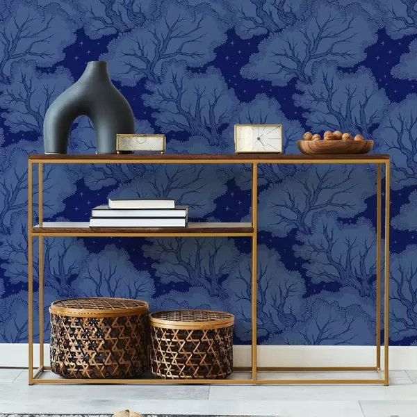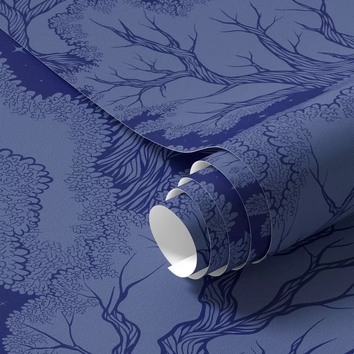 Papel de parede Silhuetas de árvores sob um céu estrelado em tons de azul Nr. a00798