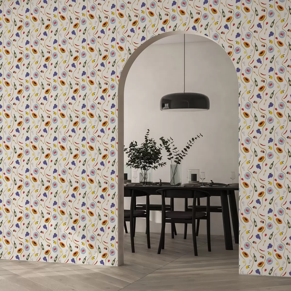 Papel de parede Garrafas, mamão, limões e especiarias sobre um fundo claro Nr. a00802
