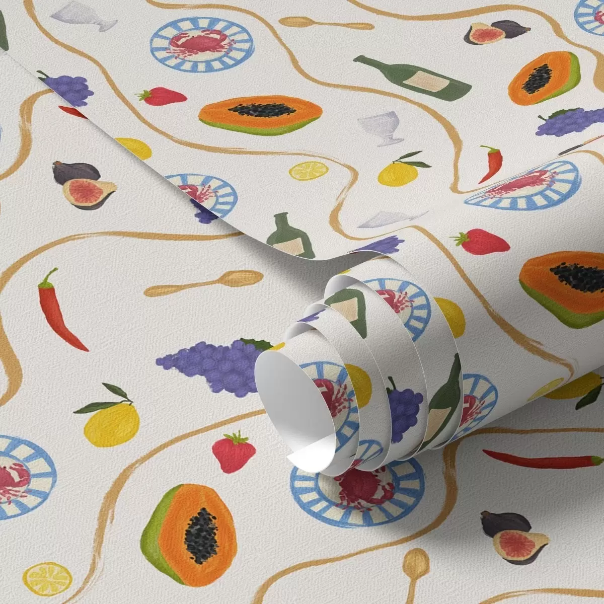 Papel de parede Garrafas, mamão, limões e especiarias sobre um fundo claro Nr. a00802