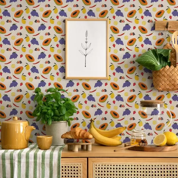 Papel de parede Mamão, uvas e limões — uma mistura de frutas coloridas Nr. a00803