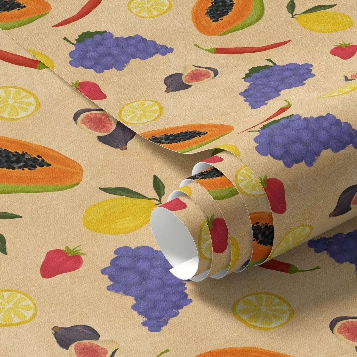 Papel de parede Mamão, frutas cítricas e bagas sobre um fundo rico e quente Nr. a00803v1