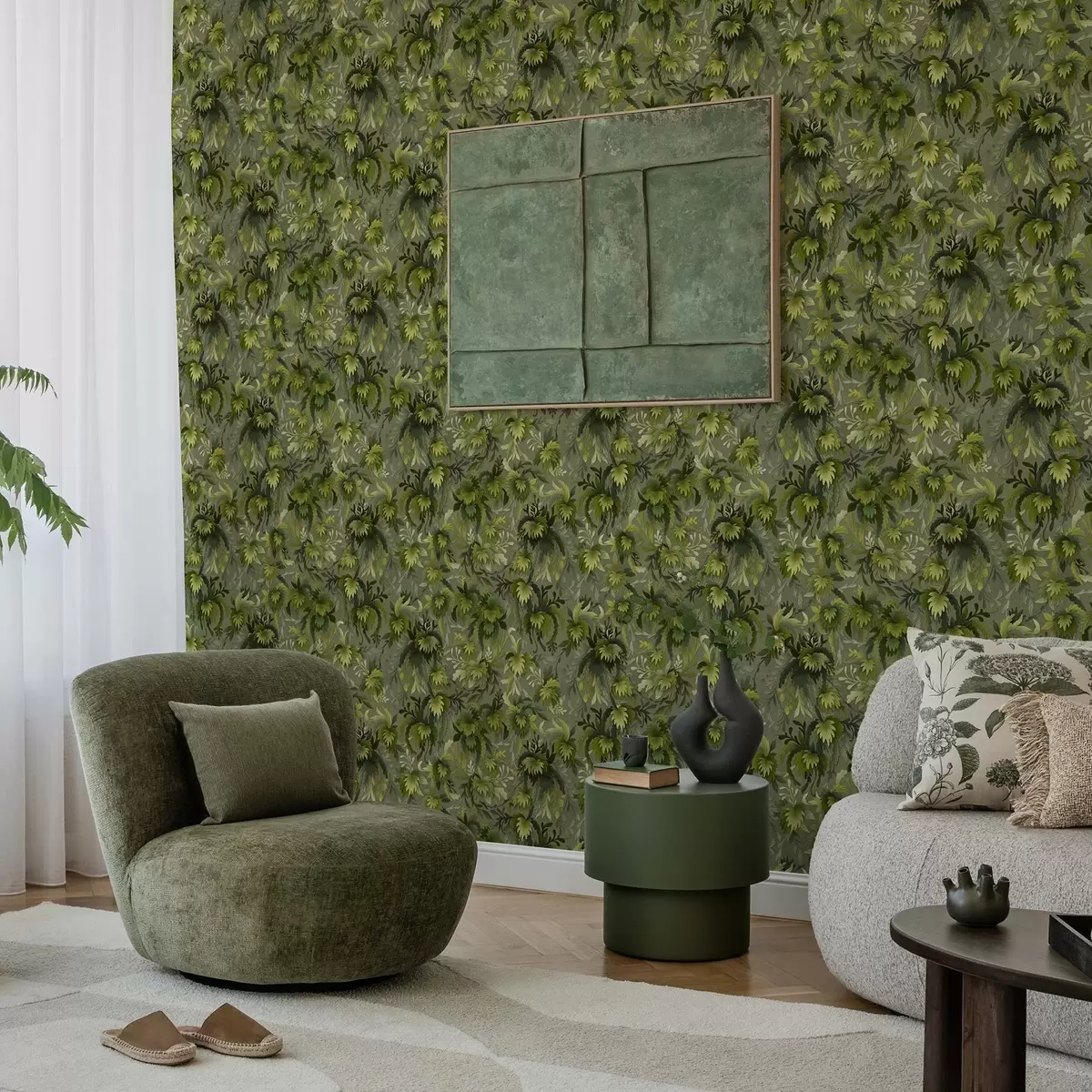 Papel de parede Folhagem verde densa sobre um fundo cinza-esverdeado Nr. a00805v1