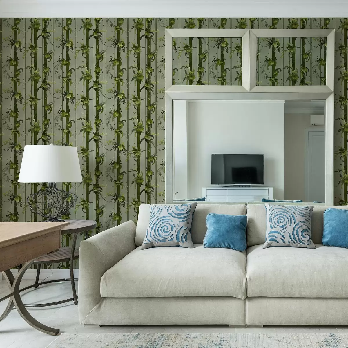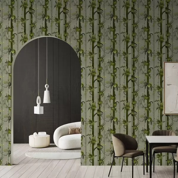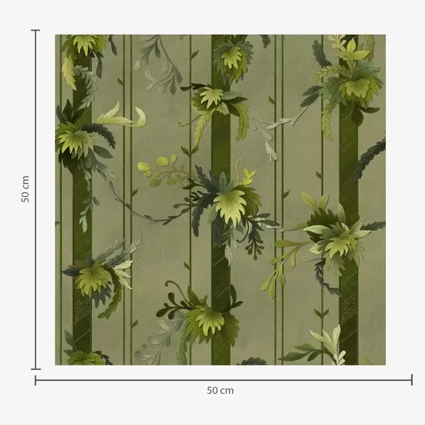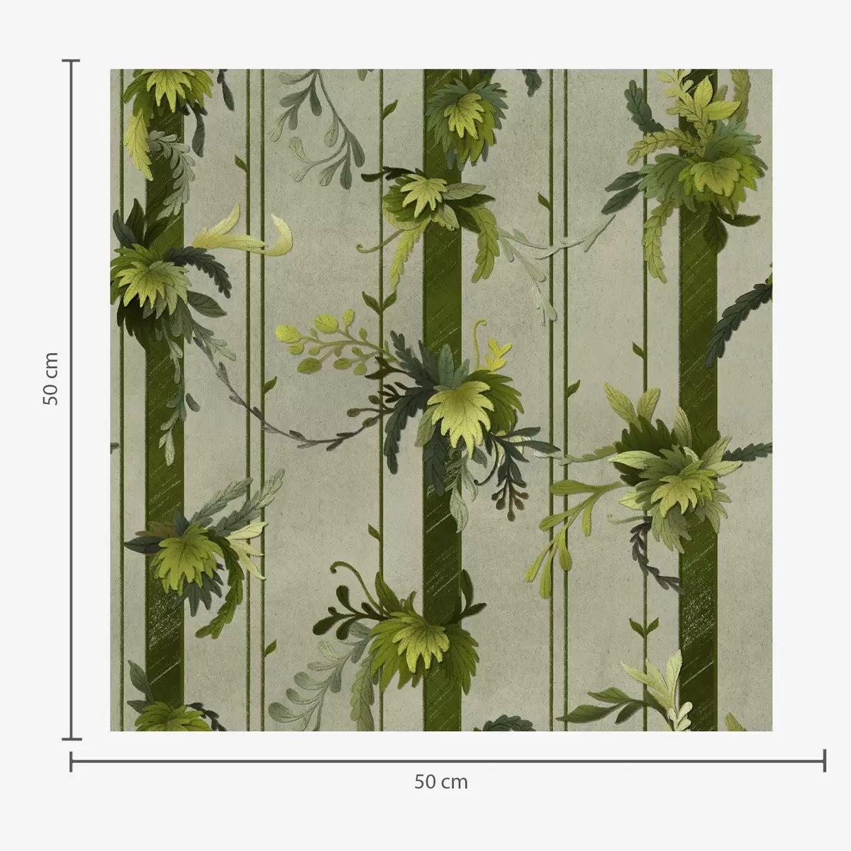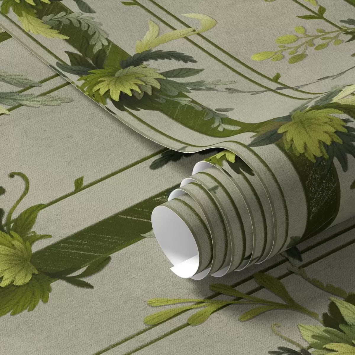 Papel de parede Folhas verdes em listras verticais sobre fundo cinza Nr. a00807v1