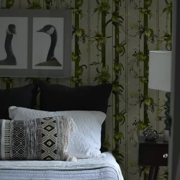 Papel de parede Folhas verdes em listras verticais sobre fundo cinza Nr. a00807v1