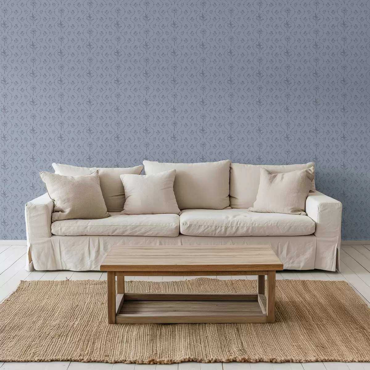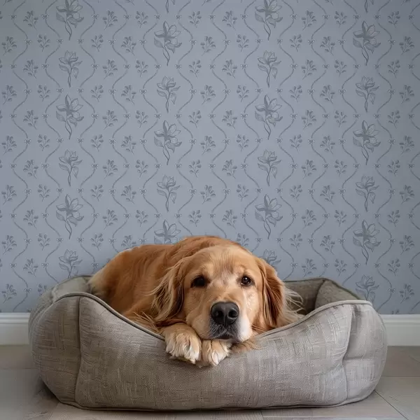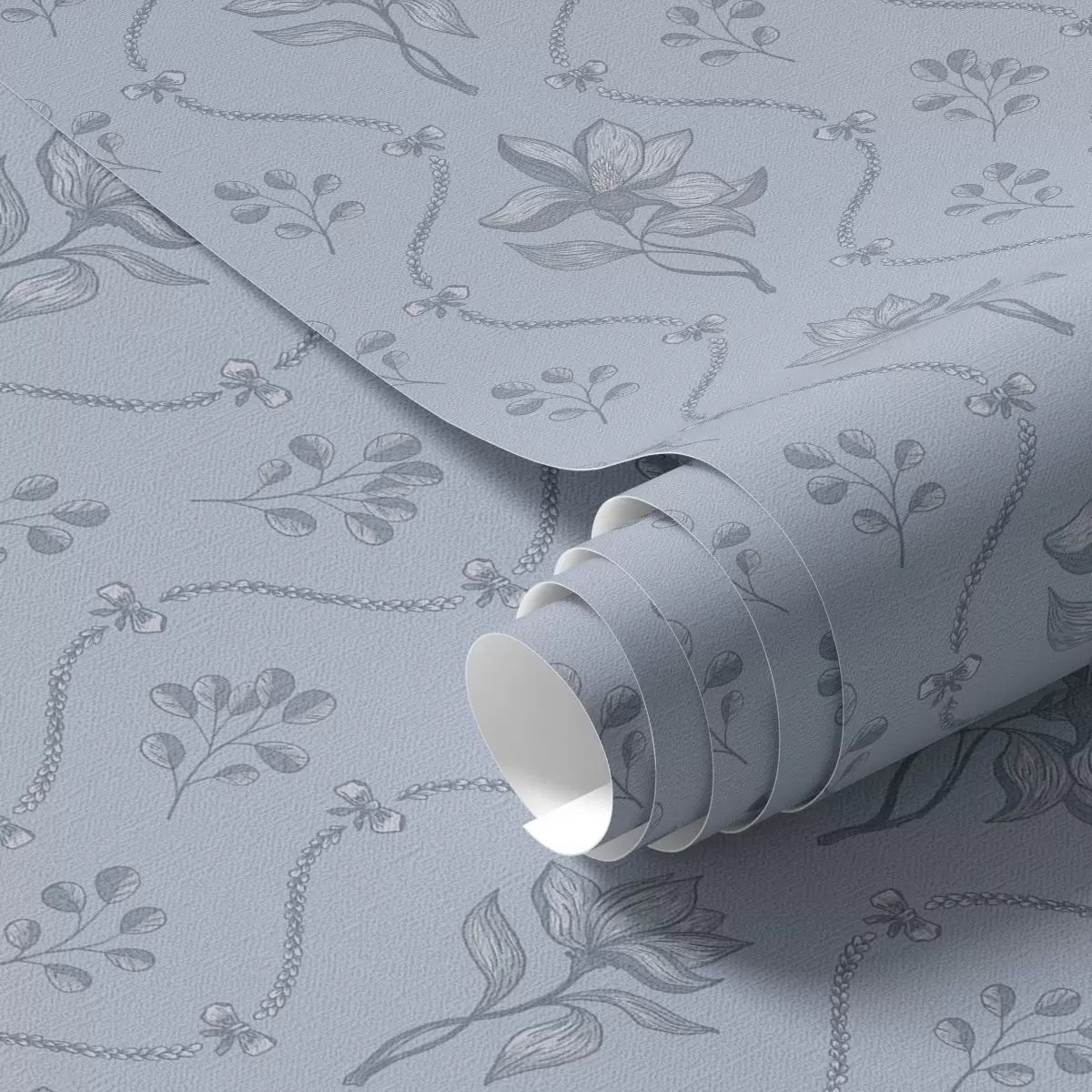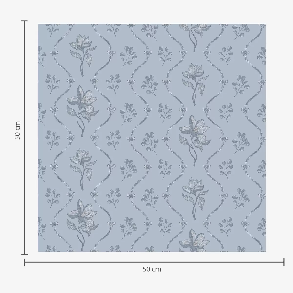Papel de parede Pequenas flores e fitas em tons de cinza-azulado Nr. a00808v2