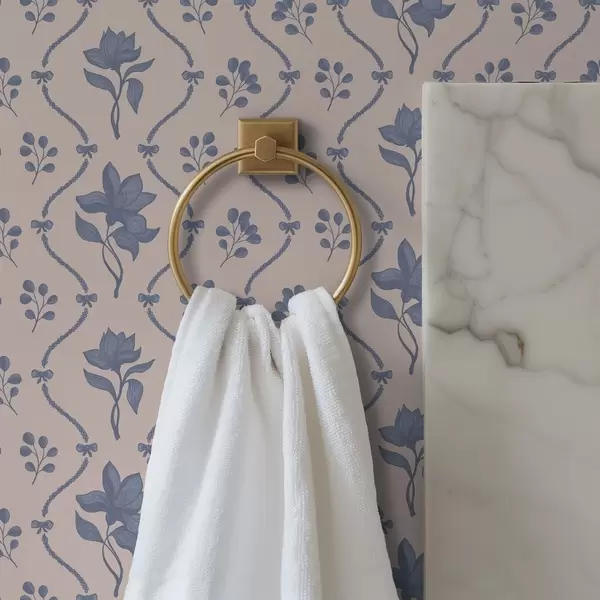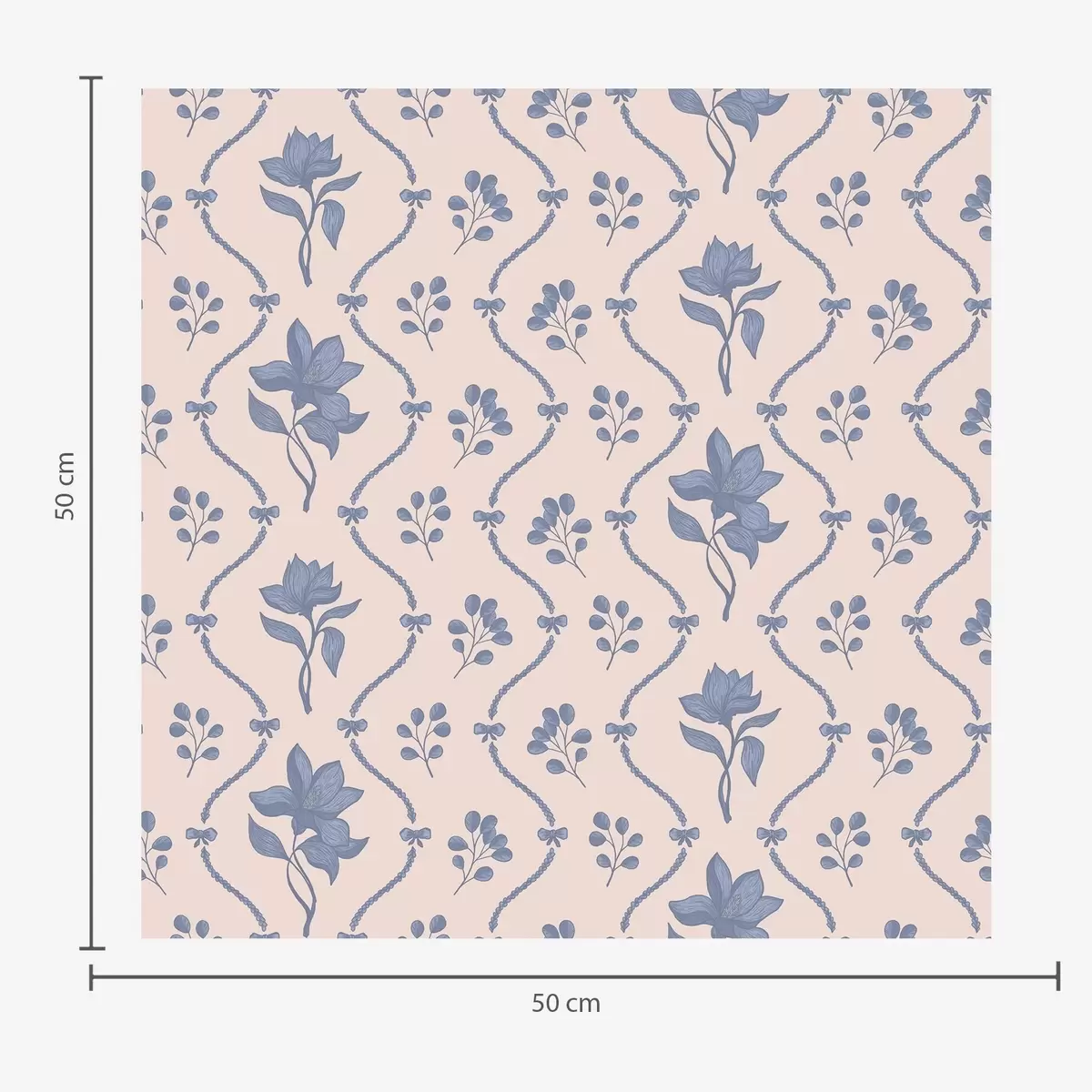 Papel de parede Pequenas flores e fitas em tons de azul e rosa Nr. a00808v3