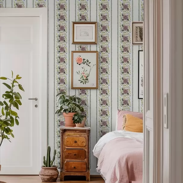 Papel de parede Listras florais verticais em tons de azul lilás Nr. a00809