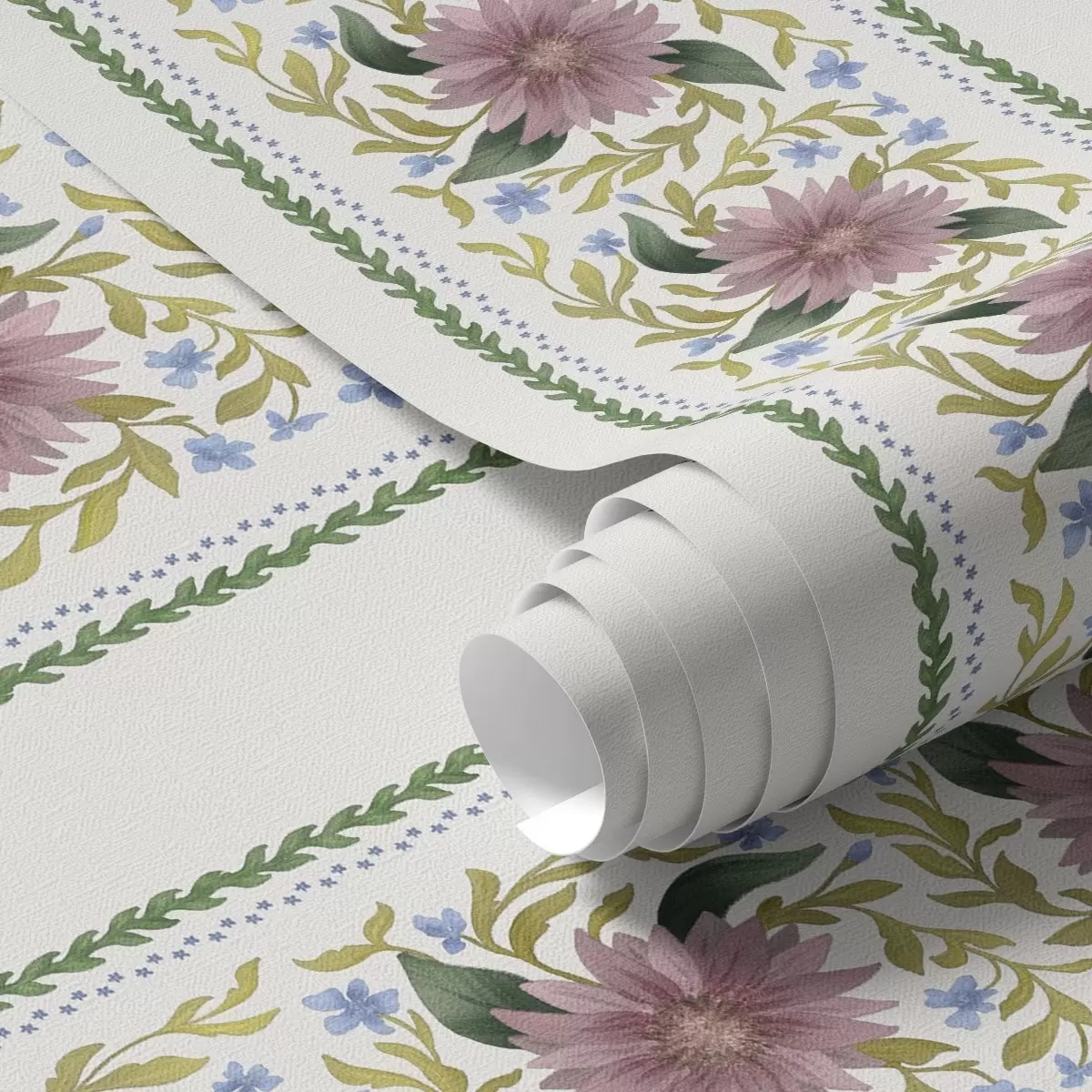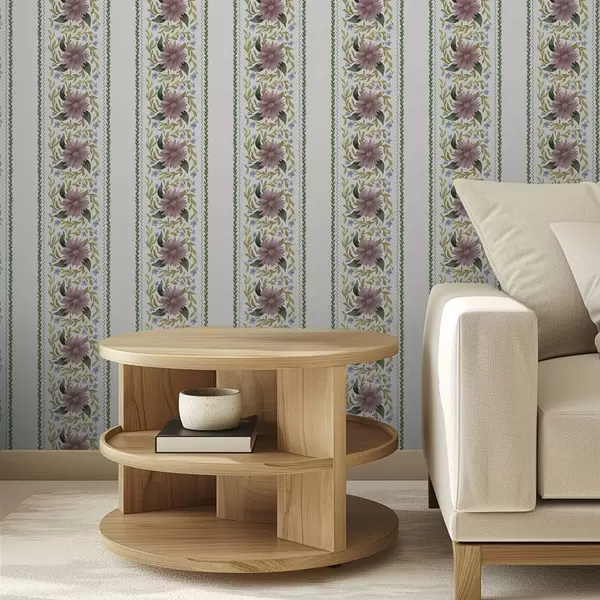 Papel de parede Listras florais verticais em tons de azul lilás Nr. a00809