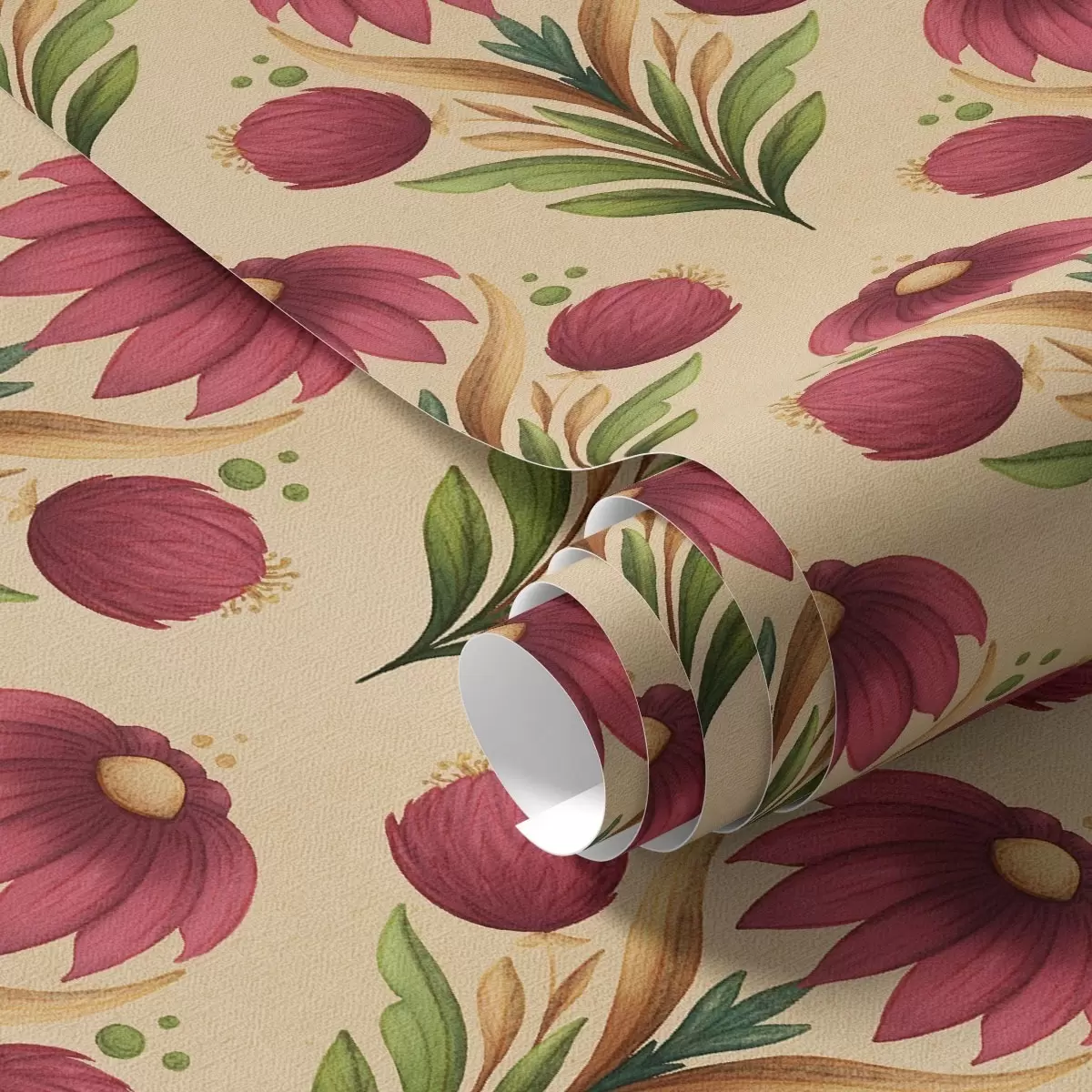 Papel de parede Ornamento floral simétrico sobre fundo bege quente Nr. a00812v6