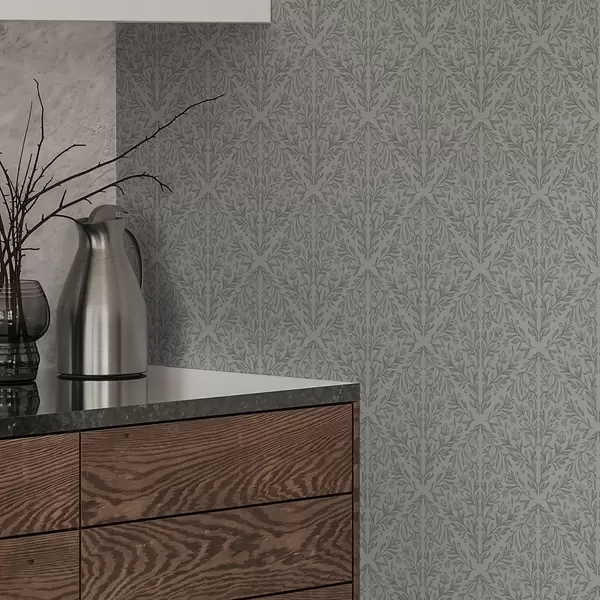 Papel de parede Damasco botânico em cinza claro com contornos suaves Nr. a00815v2